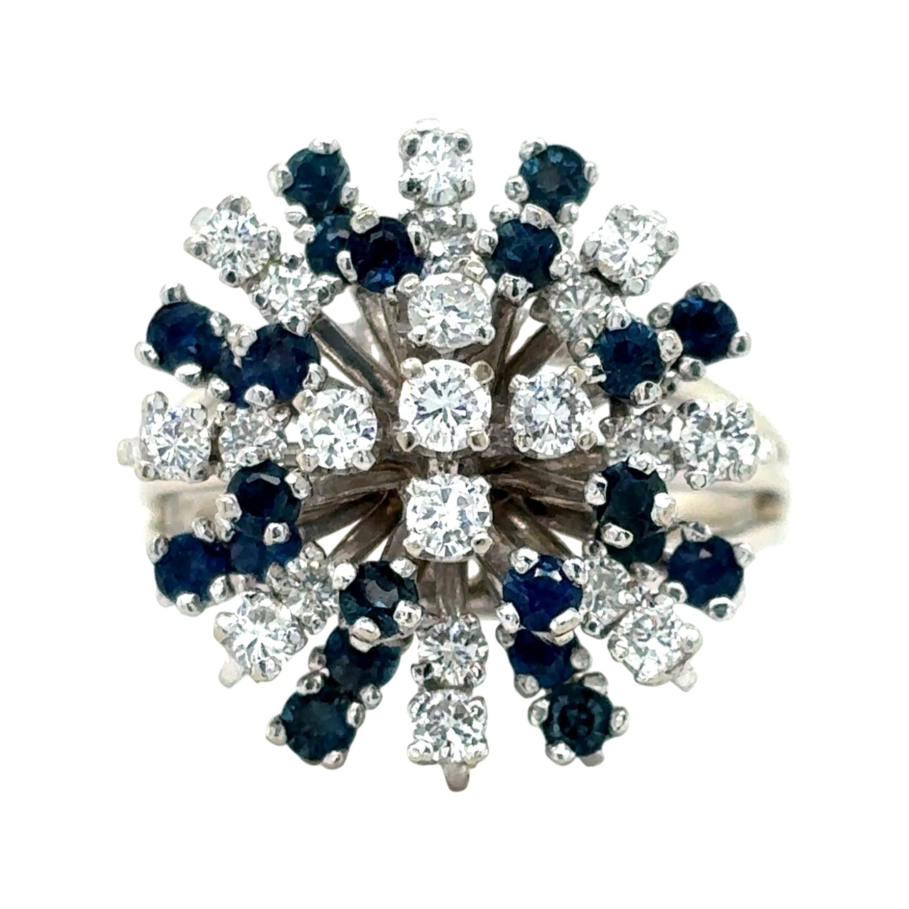This timeless 14K white gold ring showcases a dazzling cluster of sapphires and diamonds, offering a sophisticated touch to elevate your jewelry collection.