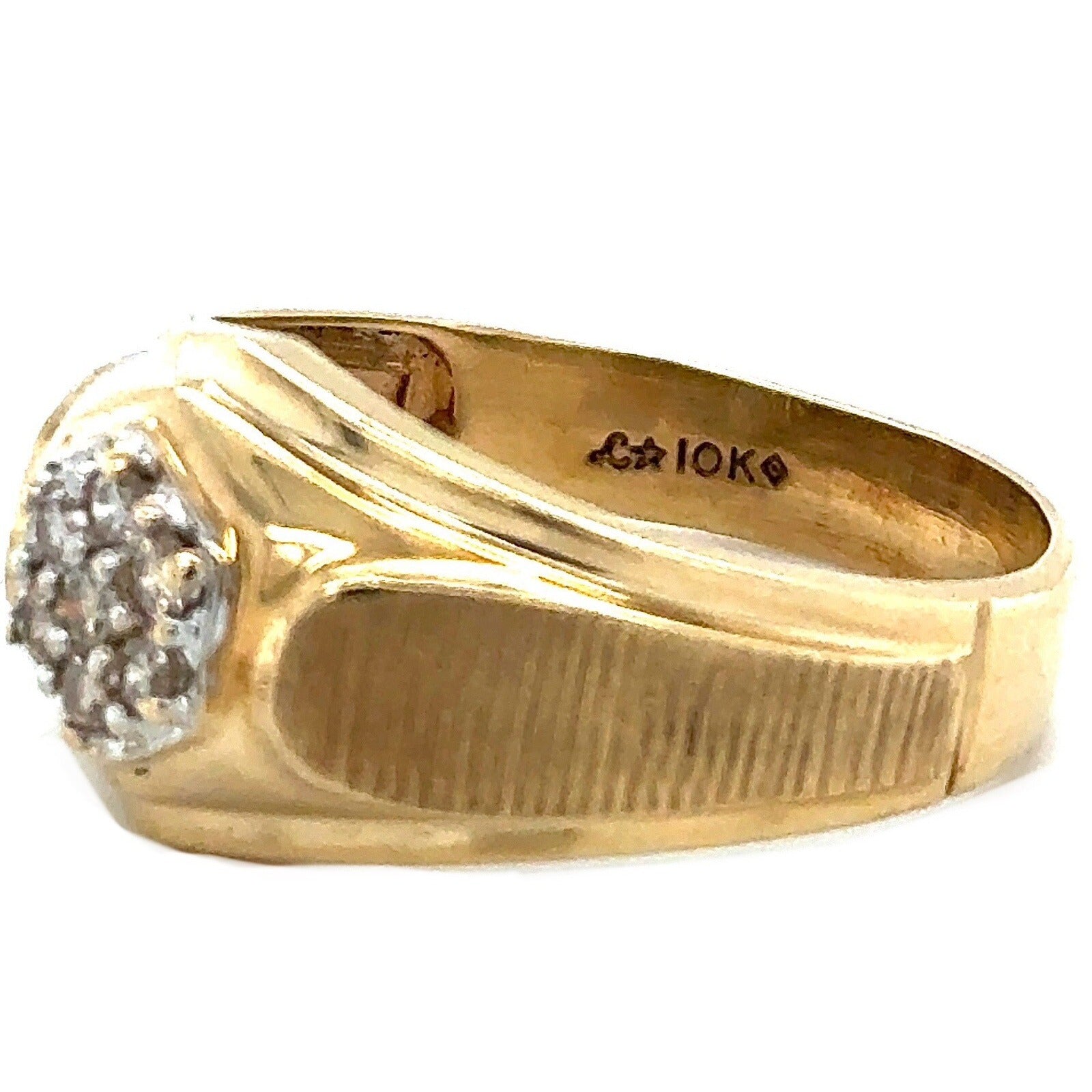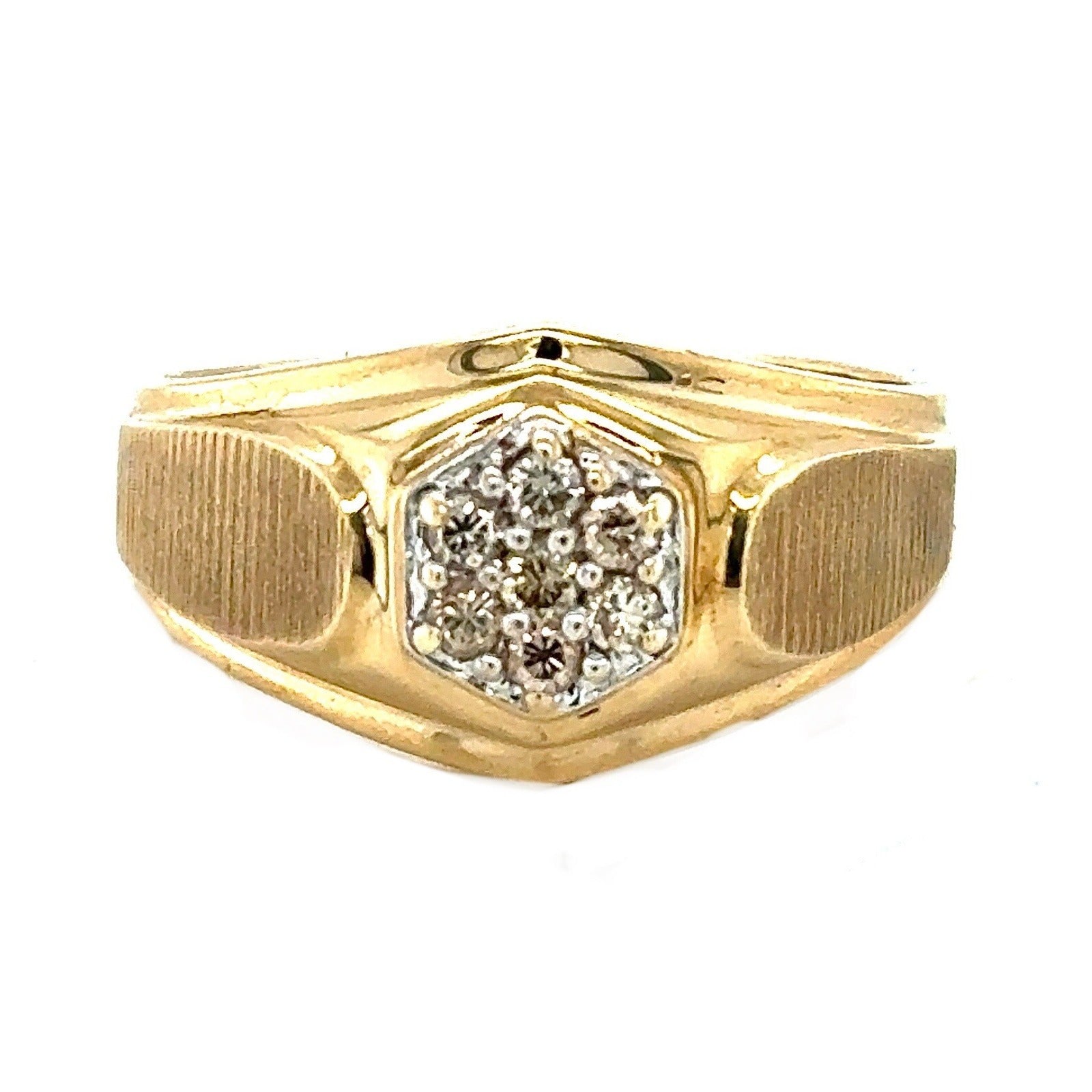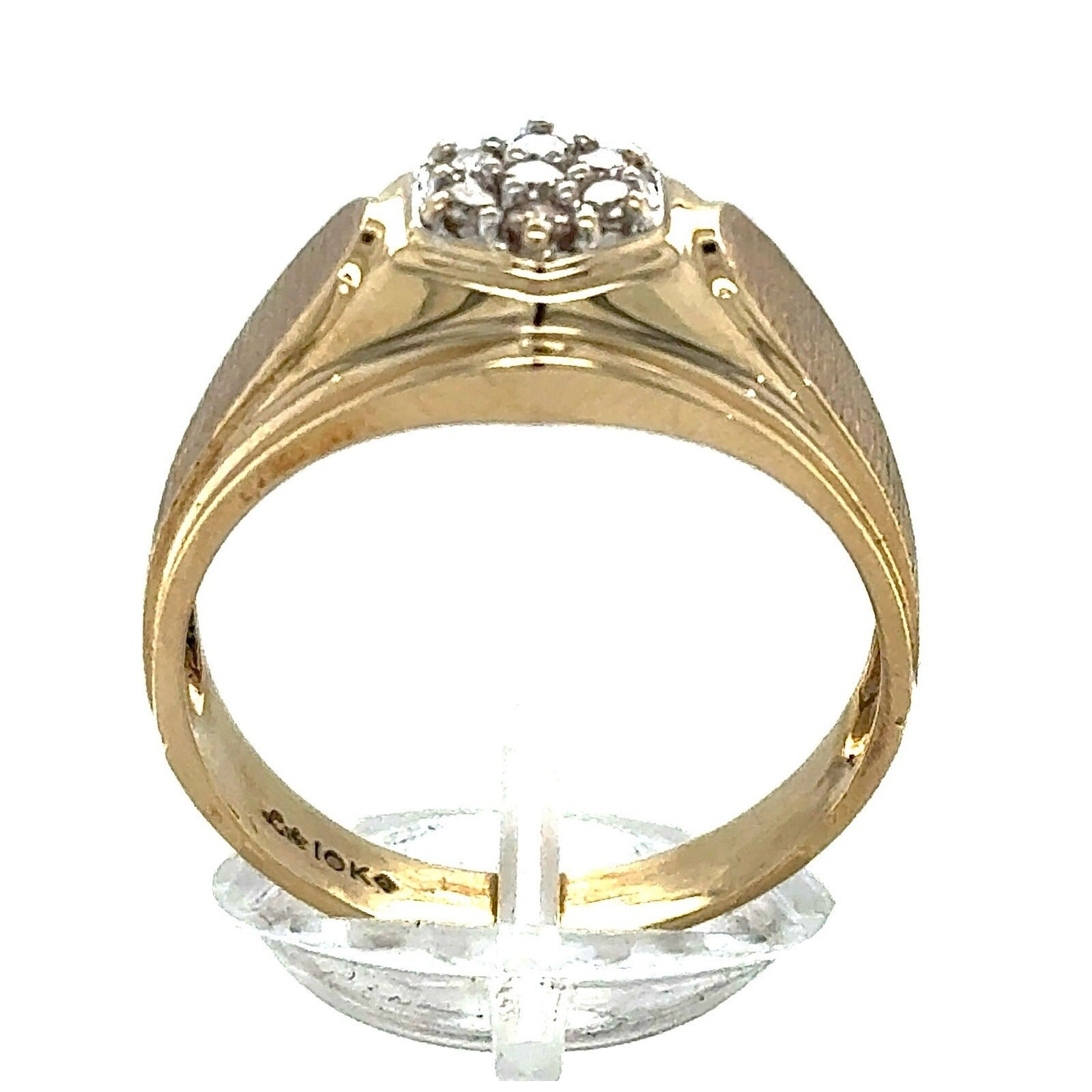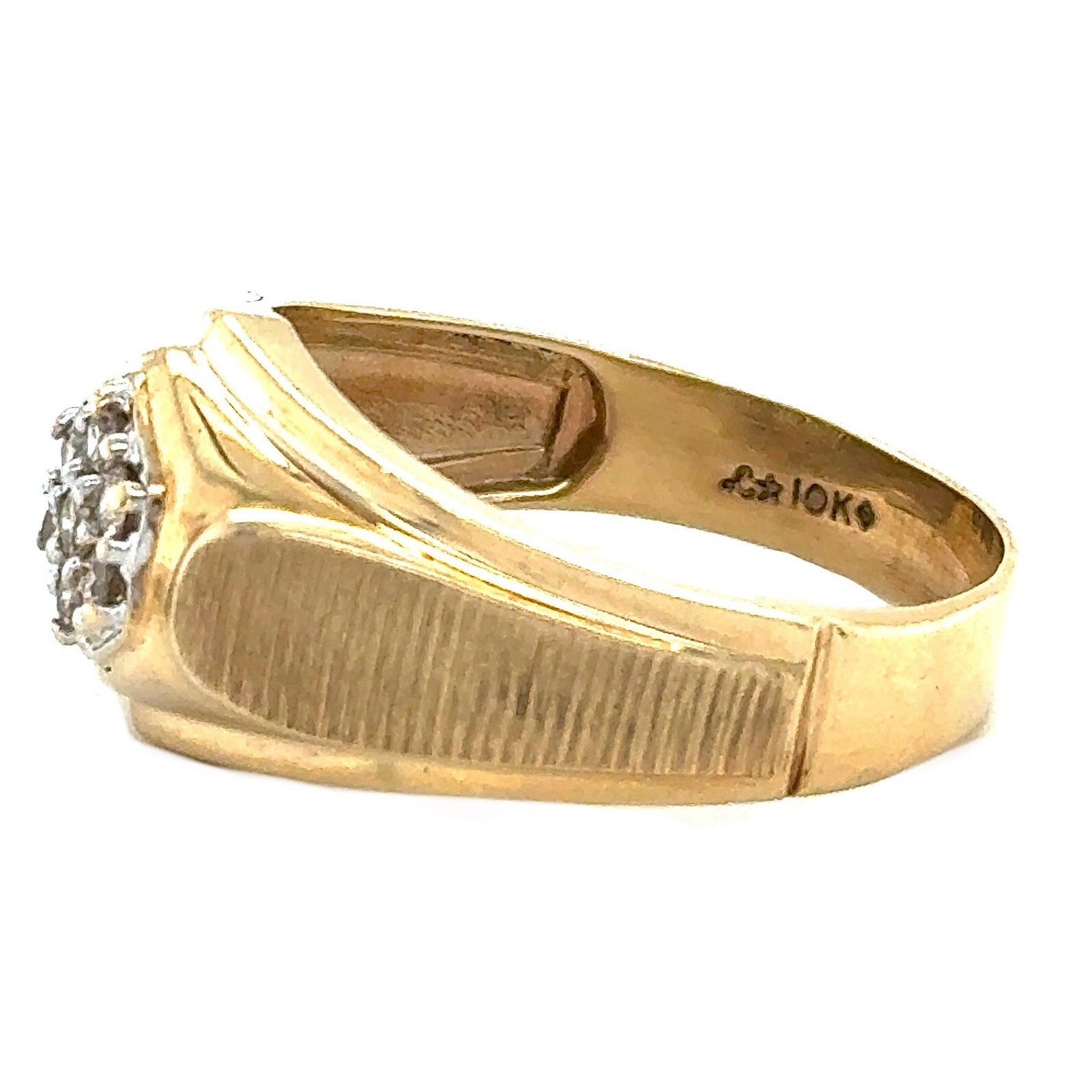 This stunning men's ring is the perfect gift for any special occasion. Crafted from 10k yellow gold, this ring features round natural diamonds with a champagne color grade. The ring has a total carat weight of 1/10 (0.1).