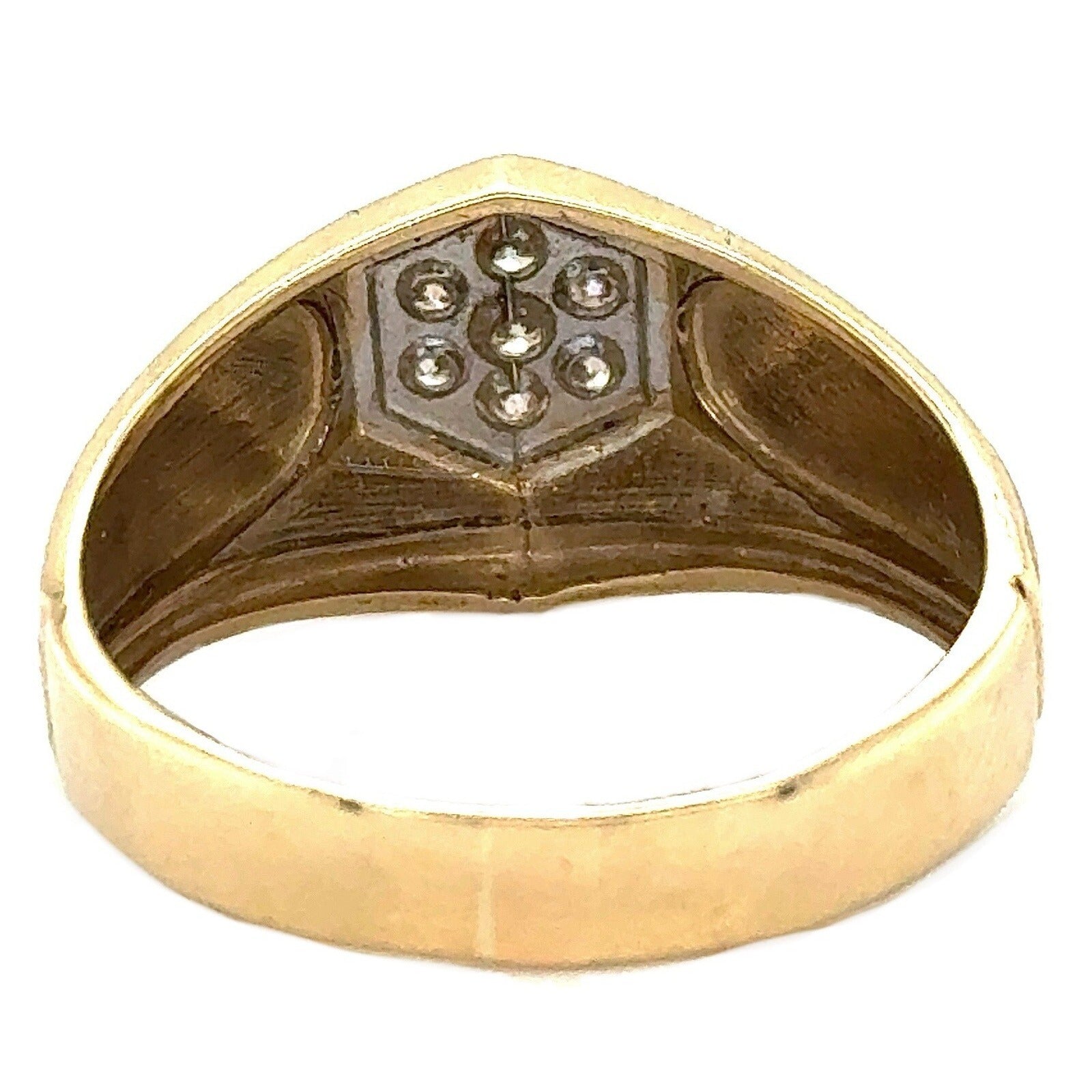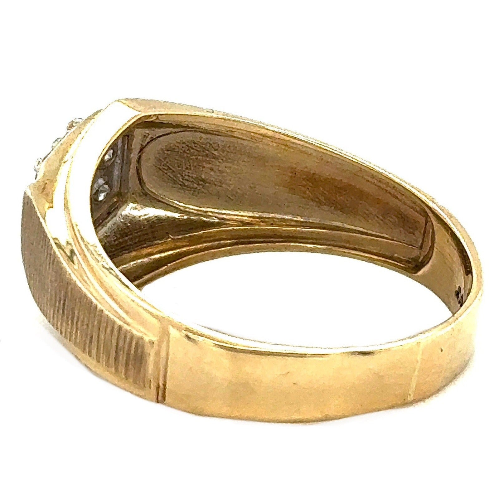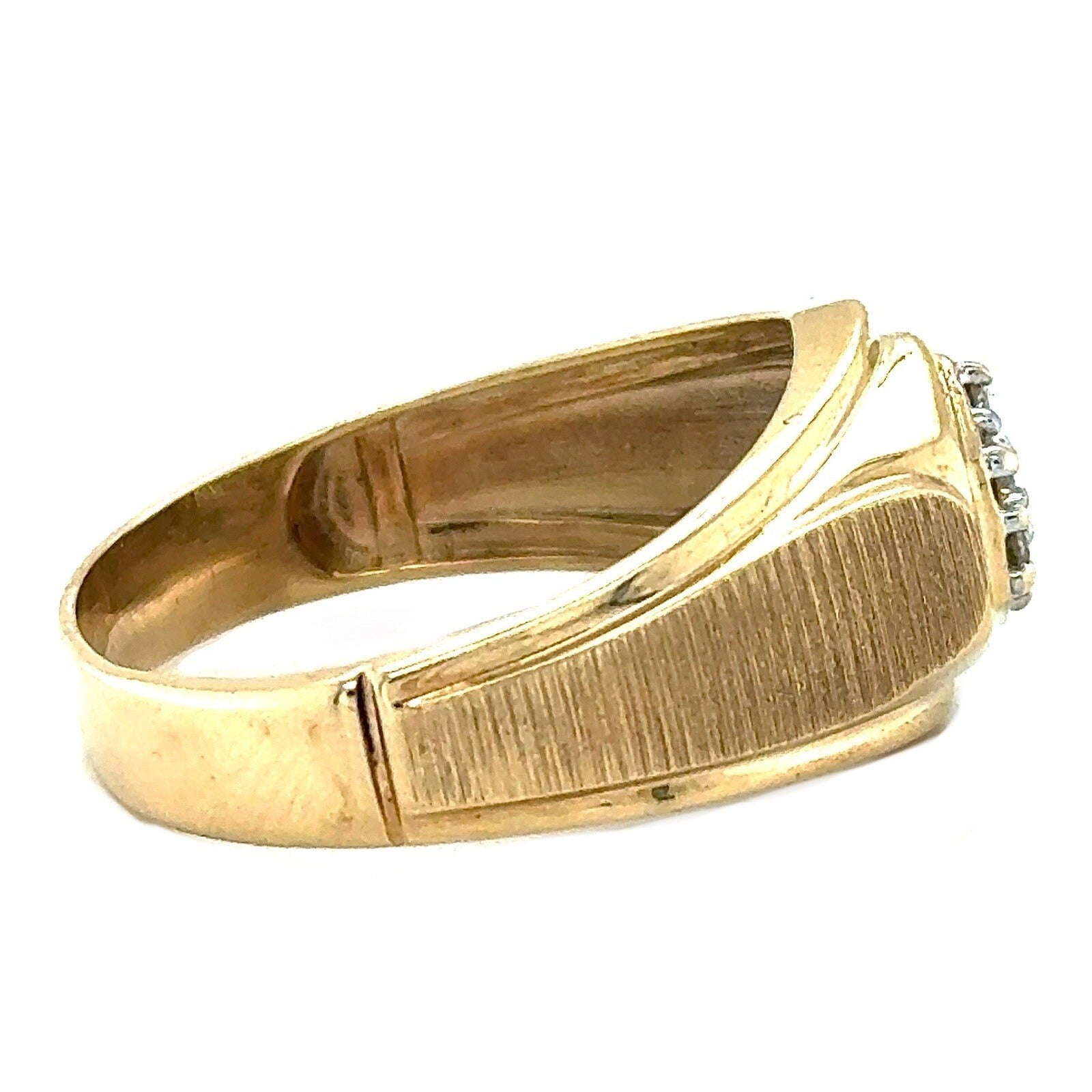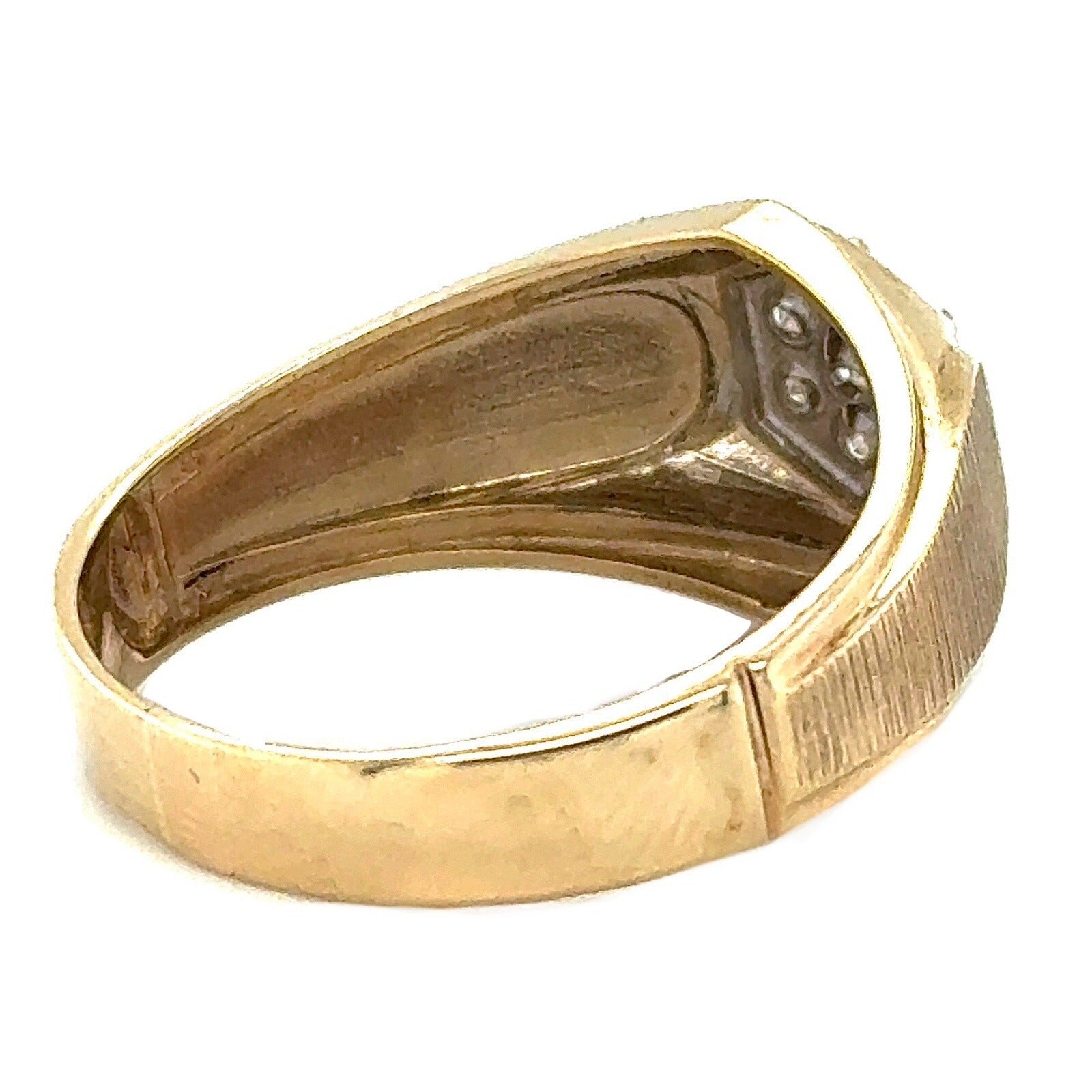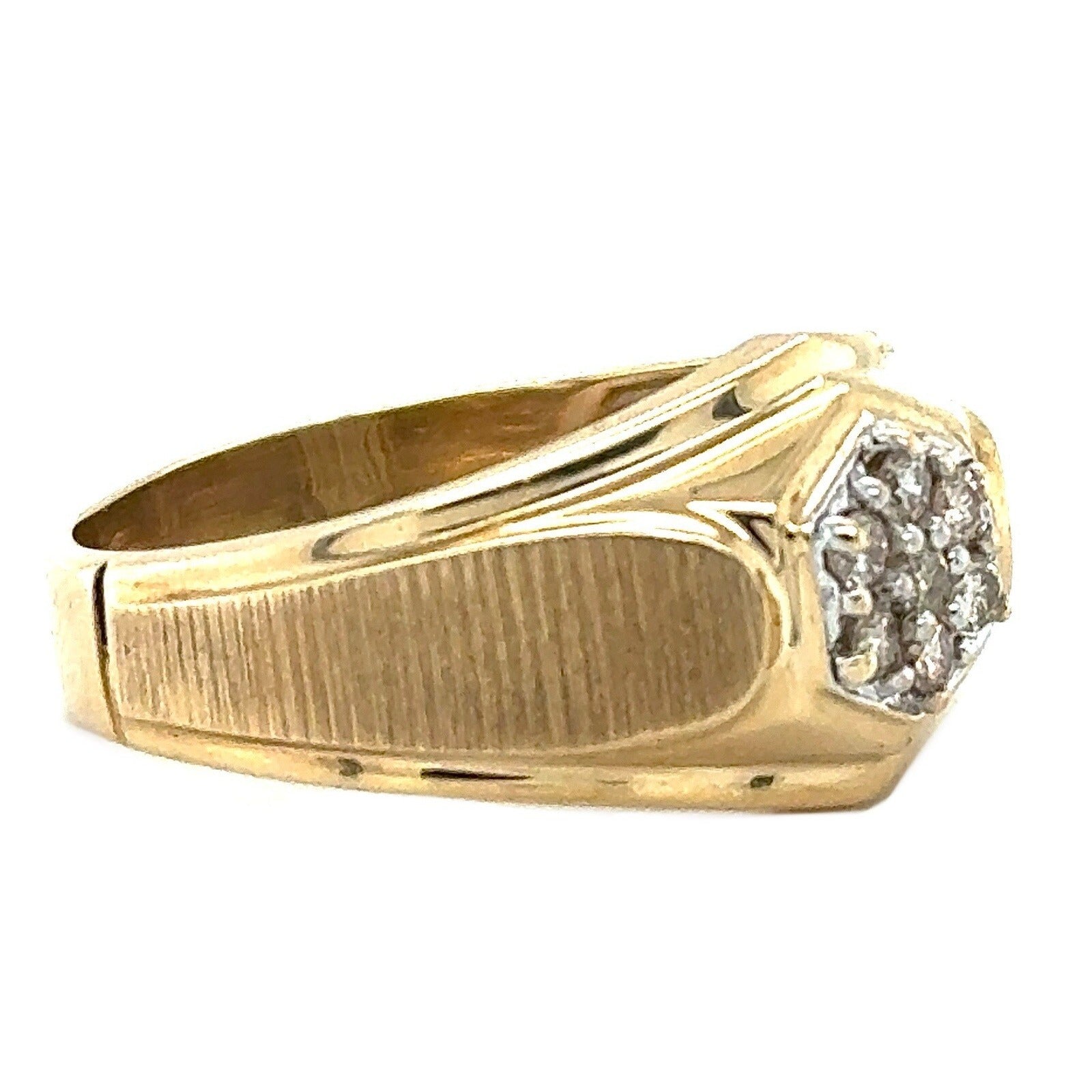 This stunning men's ring is the perfect gift for any special occasion. Crafted from 10k yellow gold, this ring features round natural diamonds with a champagne color grade. The ring has a total carat weight of 1/10 (0.1).