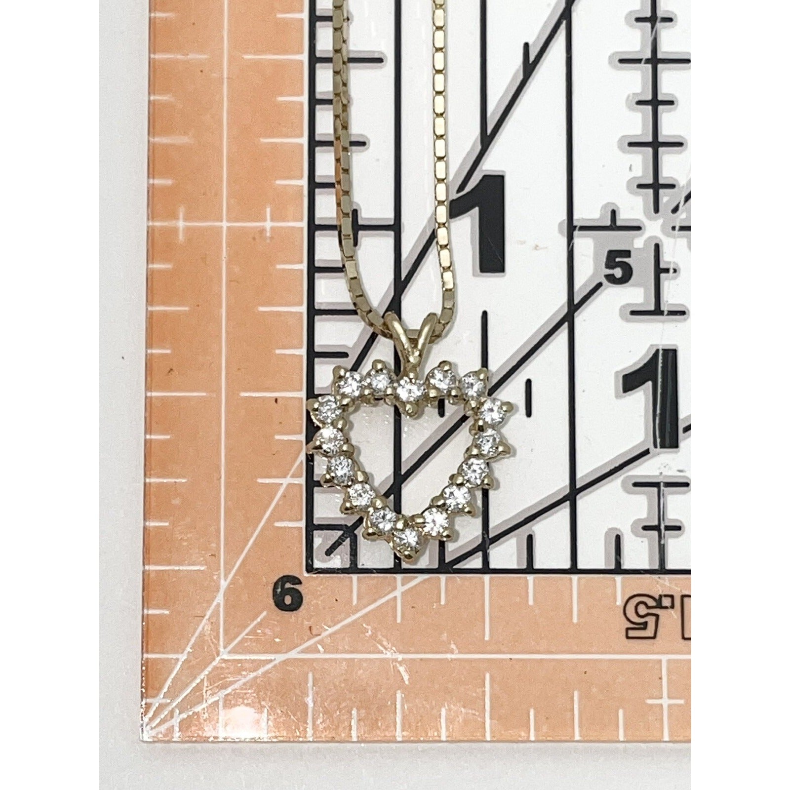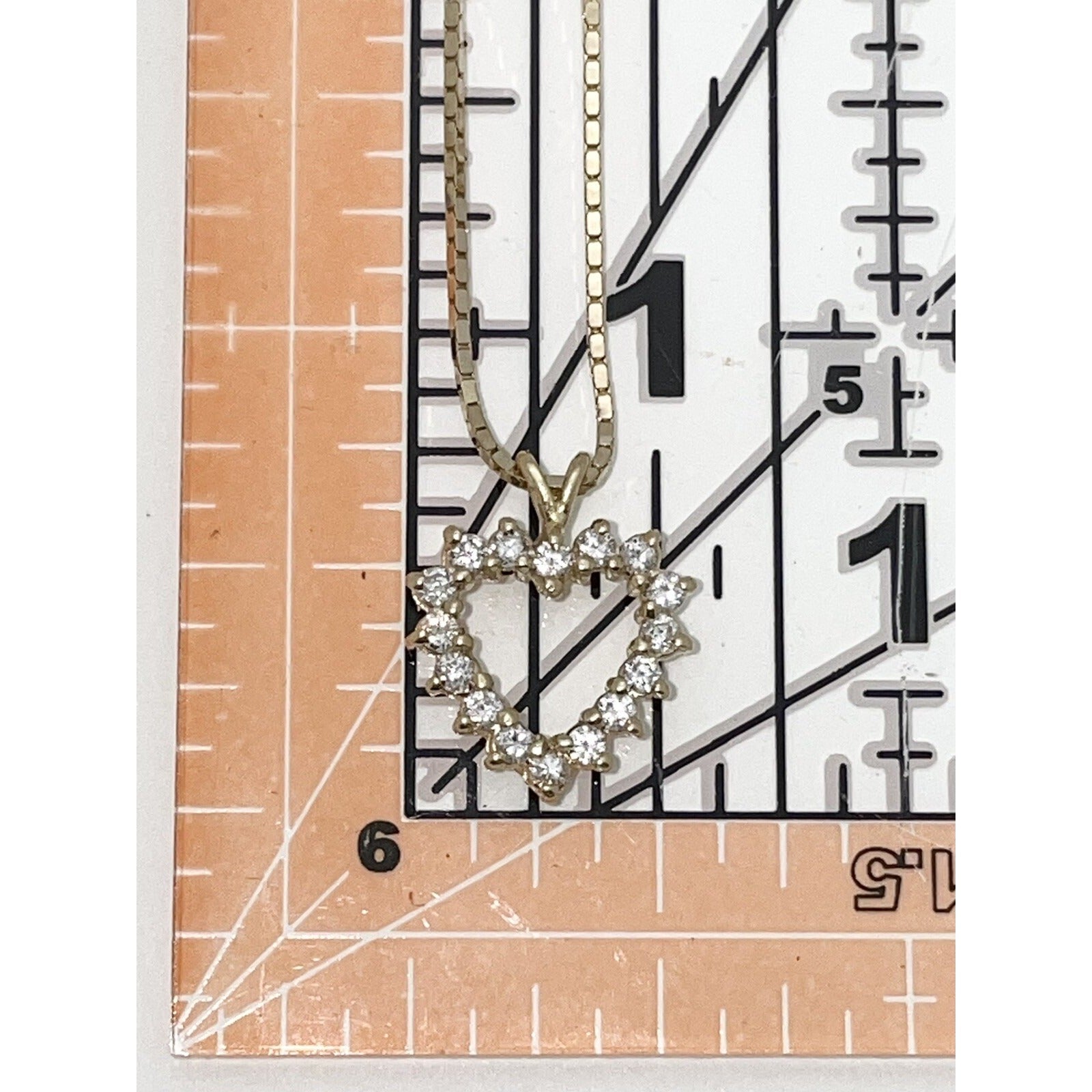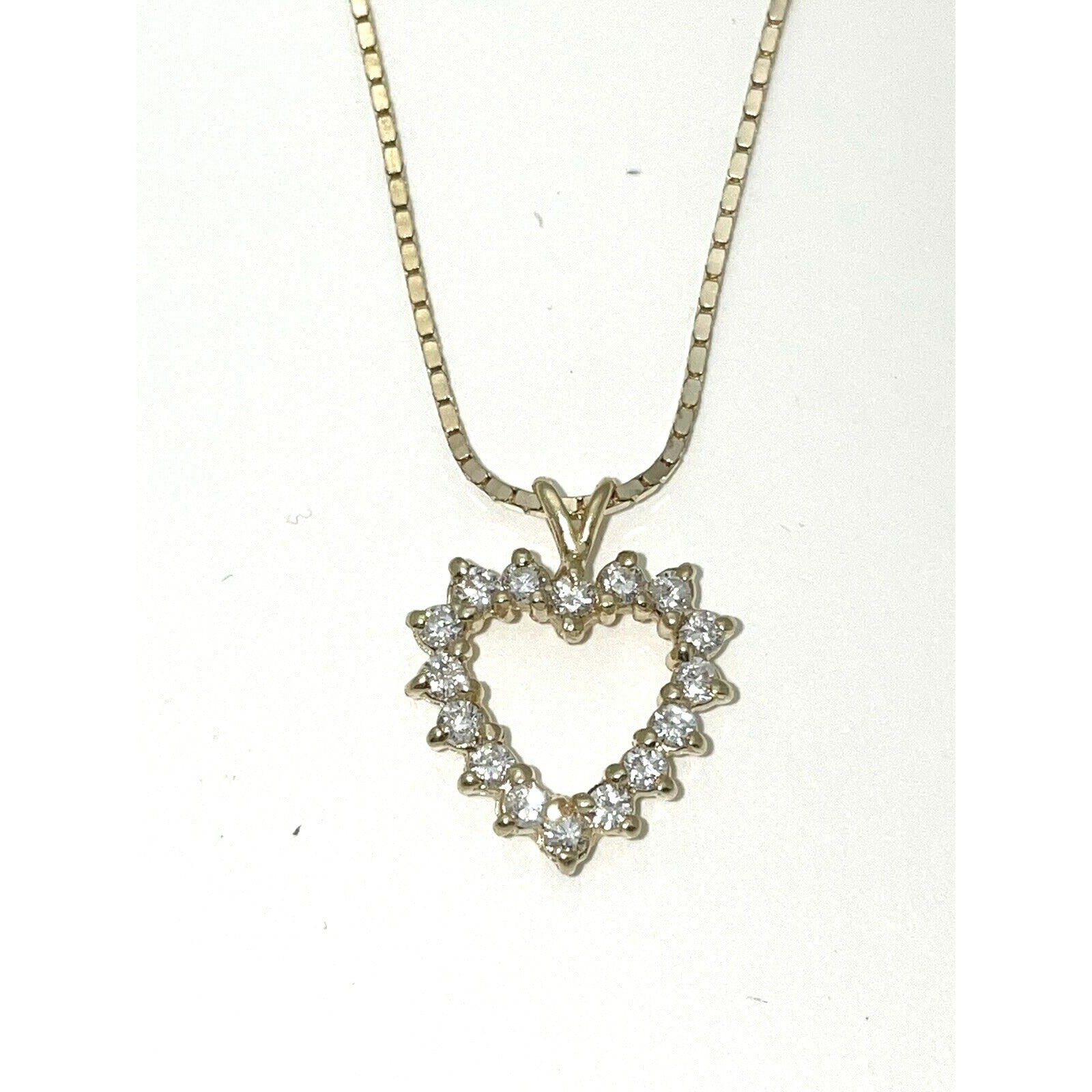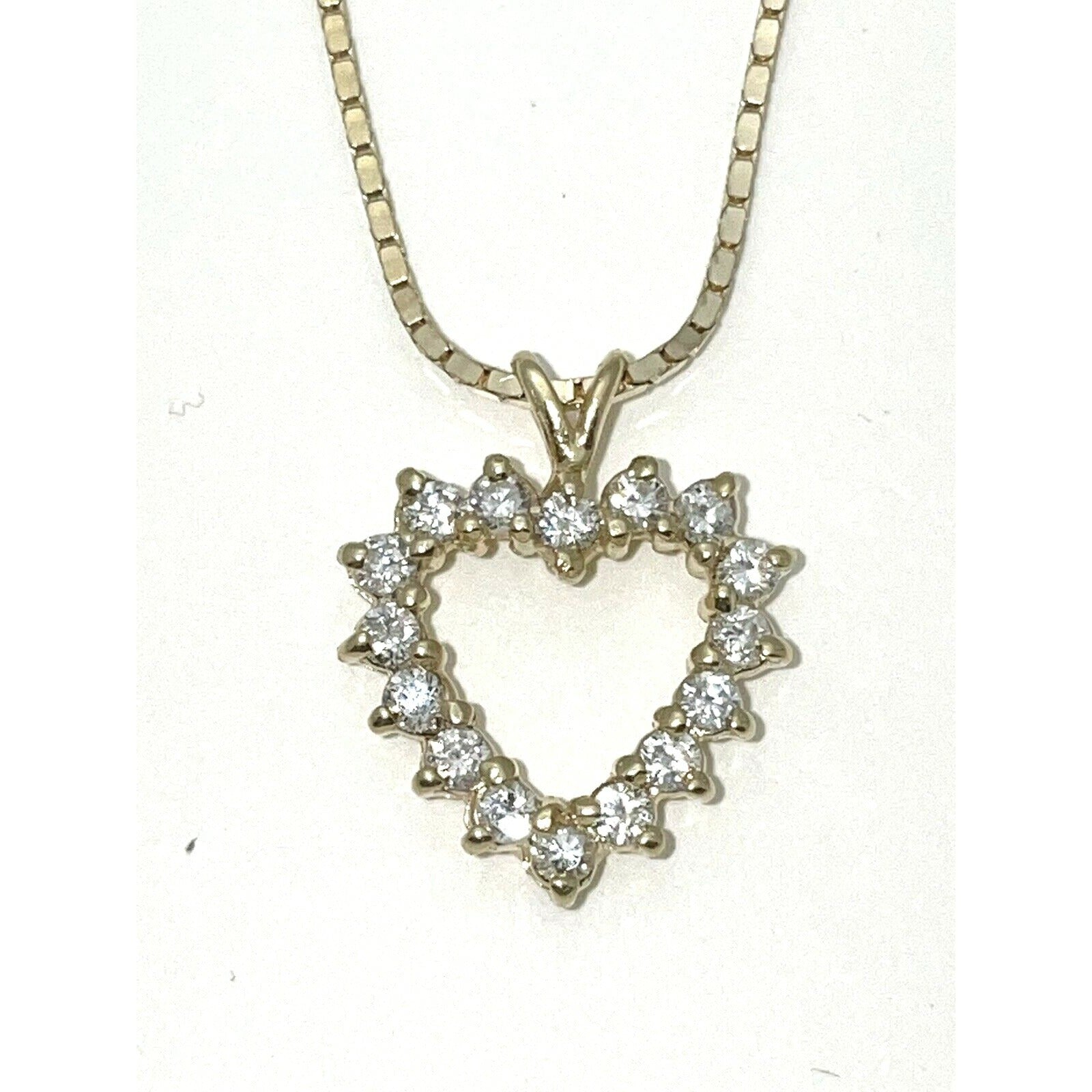 This stunning 1/2 ct diamond heart pendant features a real solid 14k yellow gold construction, weighing 5.1 grams. It hangs elegantly on an 18-inch box chain, perfect for adding a touch of luxury to any outfit.