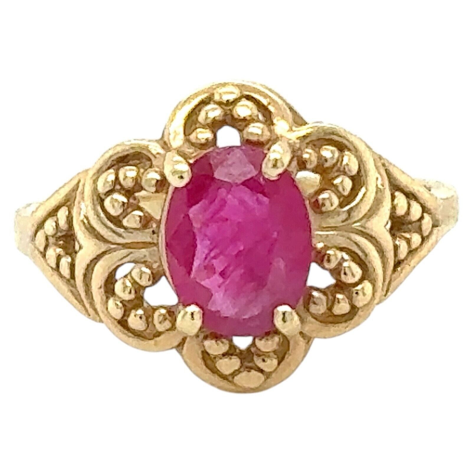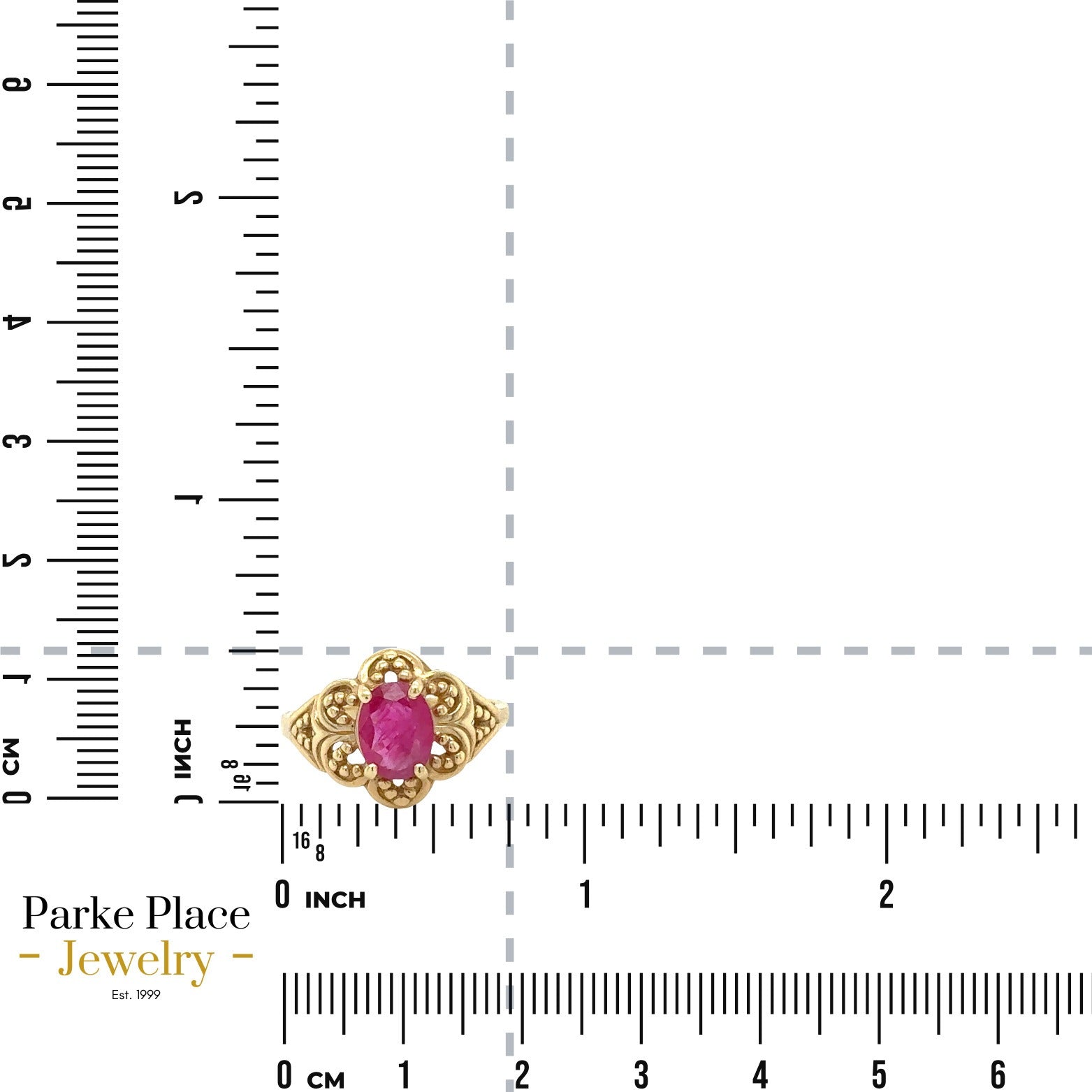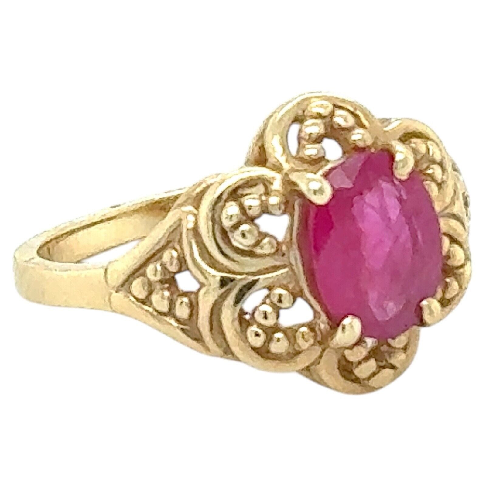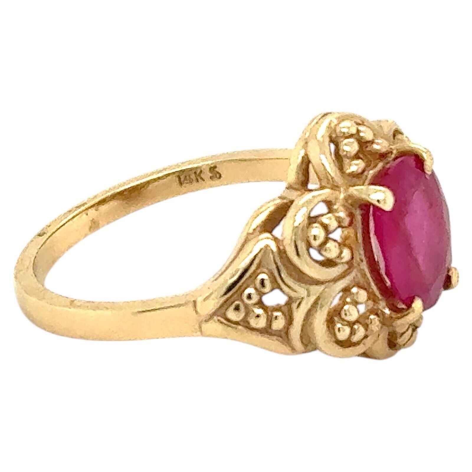 This 1/2ct Burma Ruby Solitaire 14k Yellow Gold Ring is a stunning piece of fine jewelry. The oval-shaped red ruby set in 14k yellow gold creates a classic and elegant look. The solitaire setting and unique design make it a perfect gift for you or someone special.
