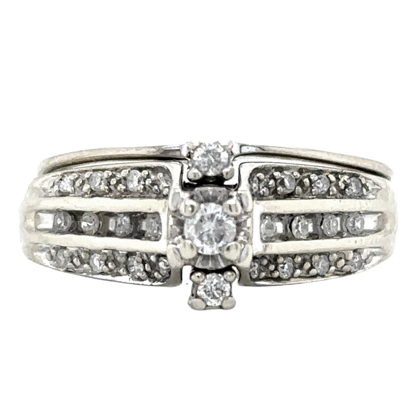 1/3 ct Diamond Bridal 10k White Gold Size 7 Wedding Ring Set 3.9g