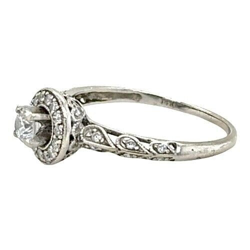 1/3ctw Diamond Halo Vintage Style 14k White Gold Engagement Ring 2g Size 6.25