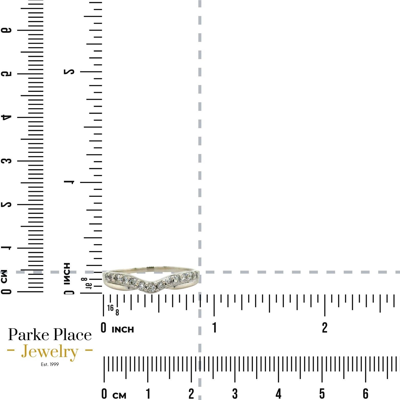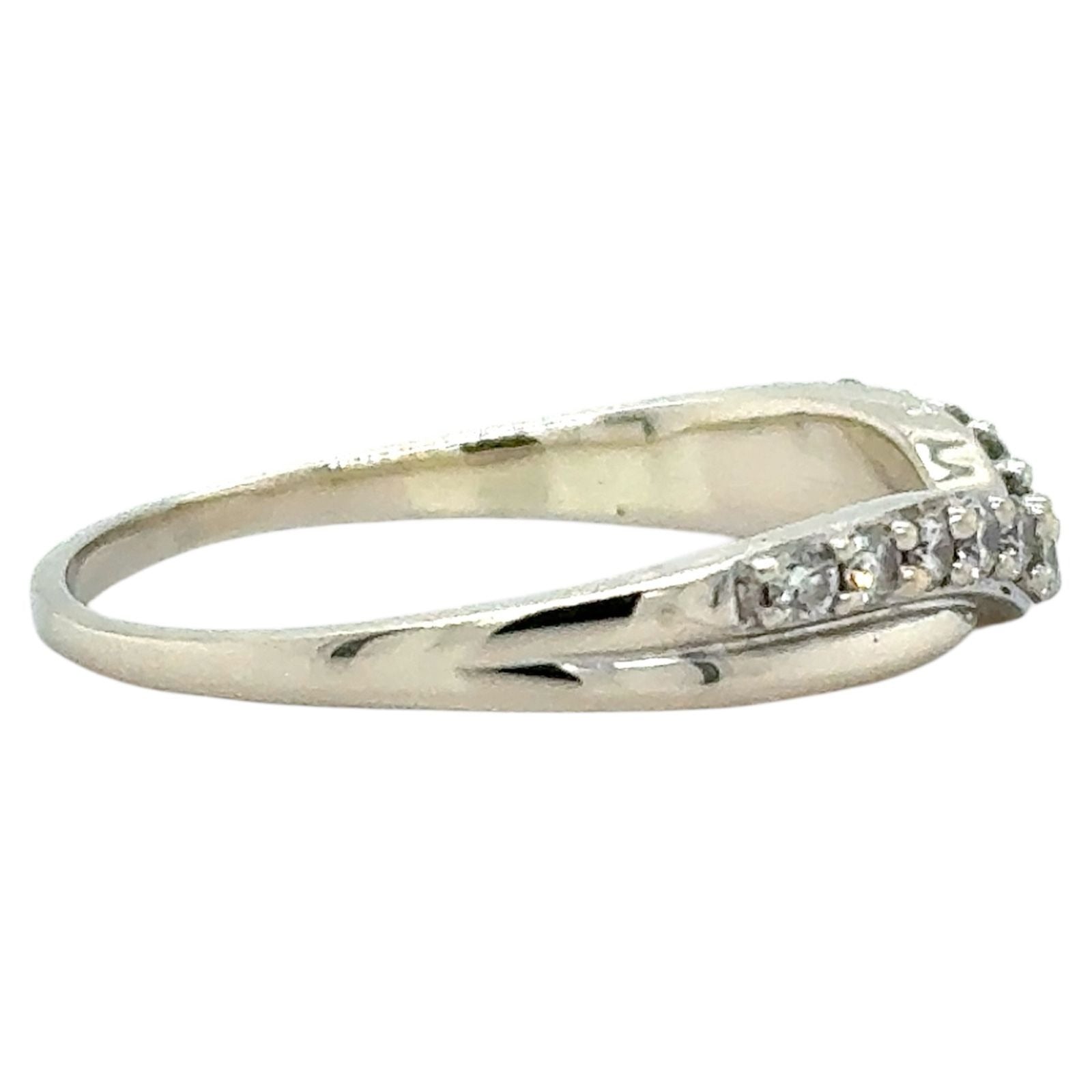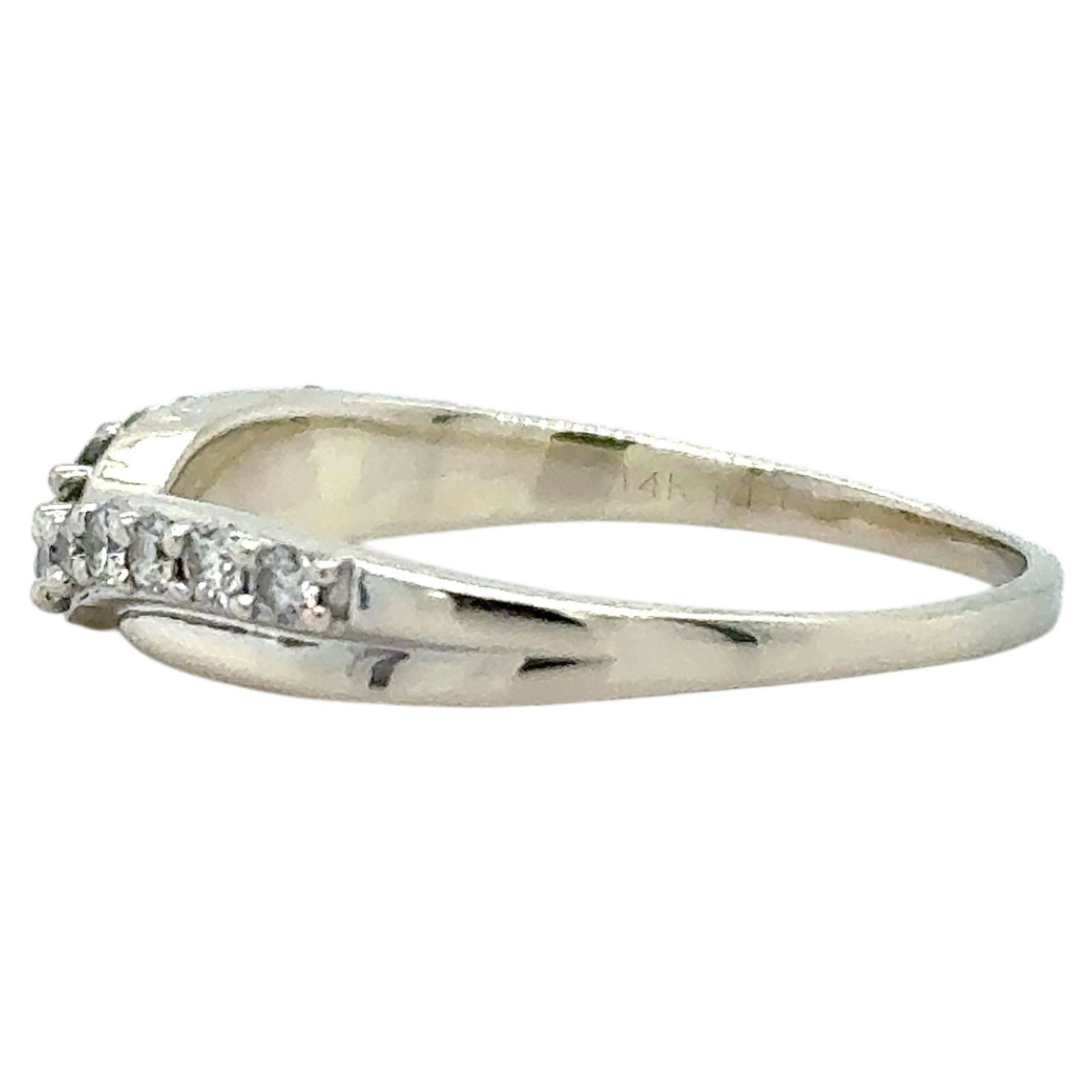 Elevate your style with this 14k white gold wedding band featuring 1/5ctw shimmering diamonds in a graceful curved design. Lightweight yet luxurious, it offers timeless elegance for any special moment.