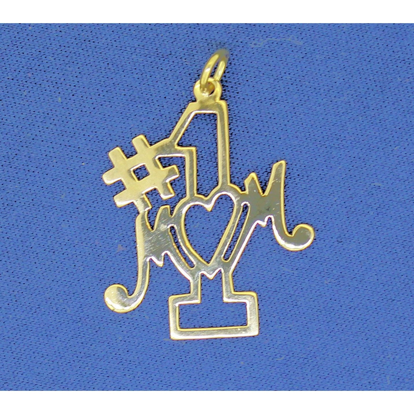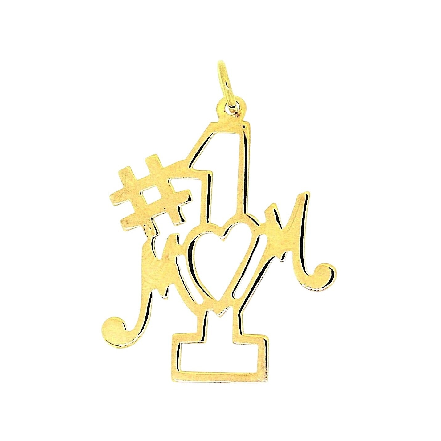 A delicate and stylish #1 Mom pendant crafted from solid 14K yellow gold, weighing 0.6g. Designed for elegance, this piece complements necklaces or bracelets effortlessly.