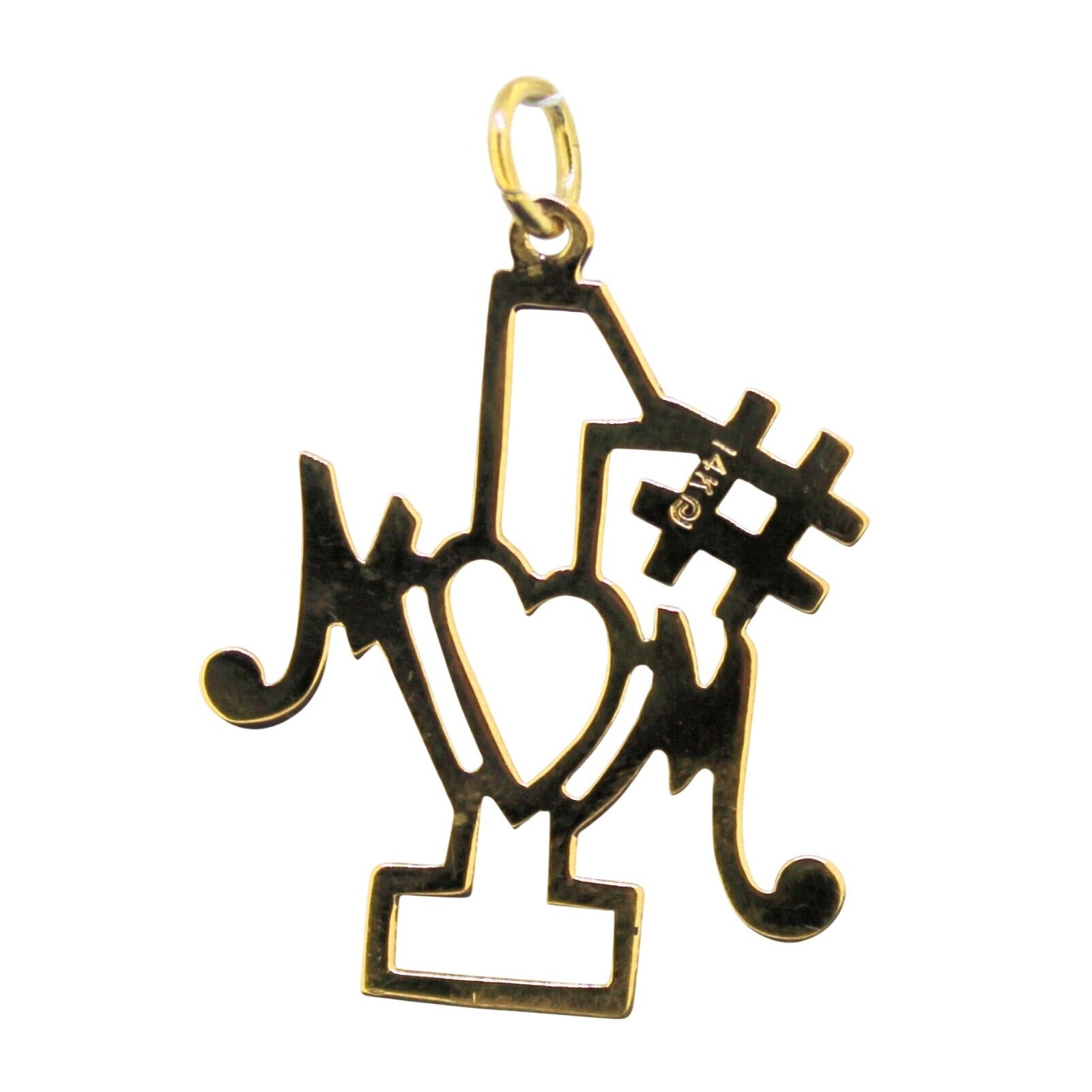 #1 Mom Pendant Solid 14K Yellow Gold Heart Design 0.6g