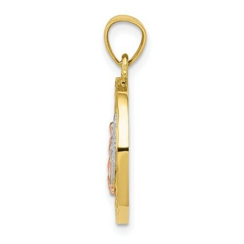 Length of Item: 22 mmWidth of Item: 16 mmCountry of Origin: United StatesMetal: 10k Two-ToneAverage Weight: 1.46 GMCharm/Element Length: 15.94 mmCharm/Element Width: 16 mmFeature: SolidFinish: PolishedManufacturing Process: Casted