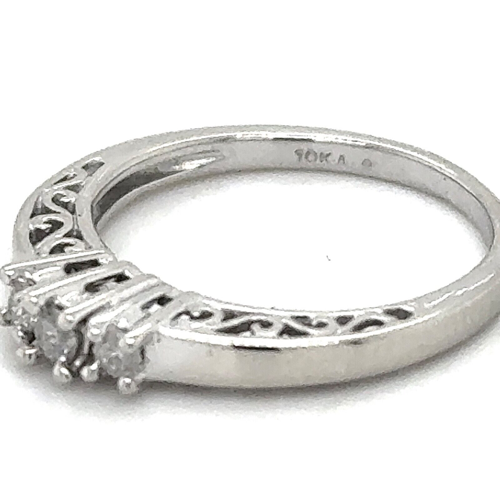 10k White Gold 1/10ctw Three-Stone Diamond Engagement Ring 2.0g Size 5