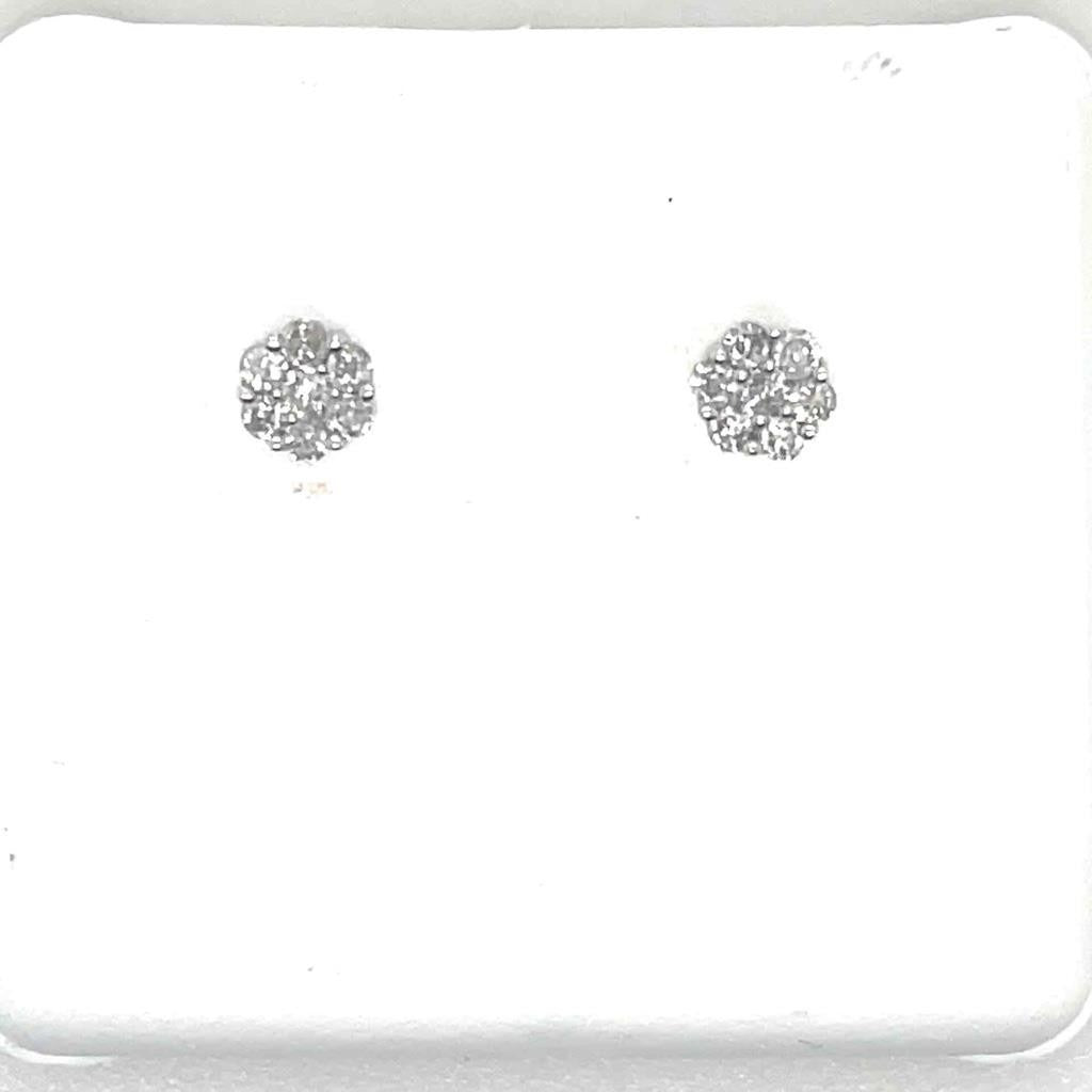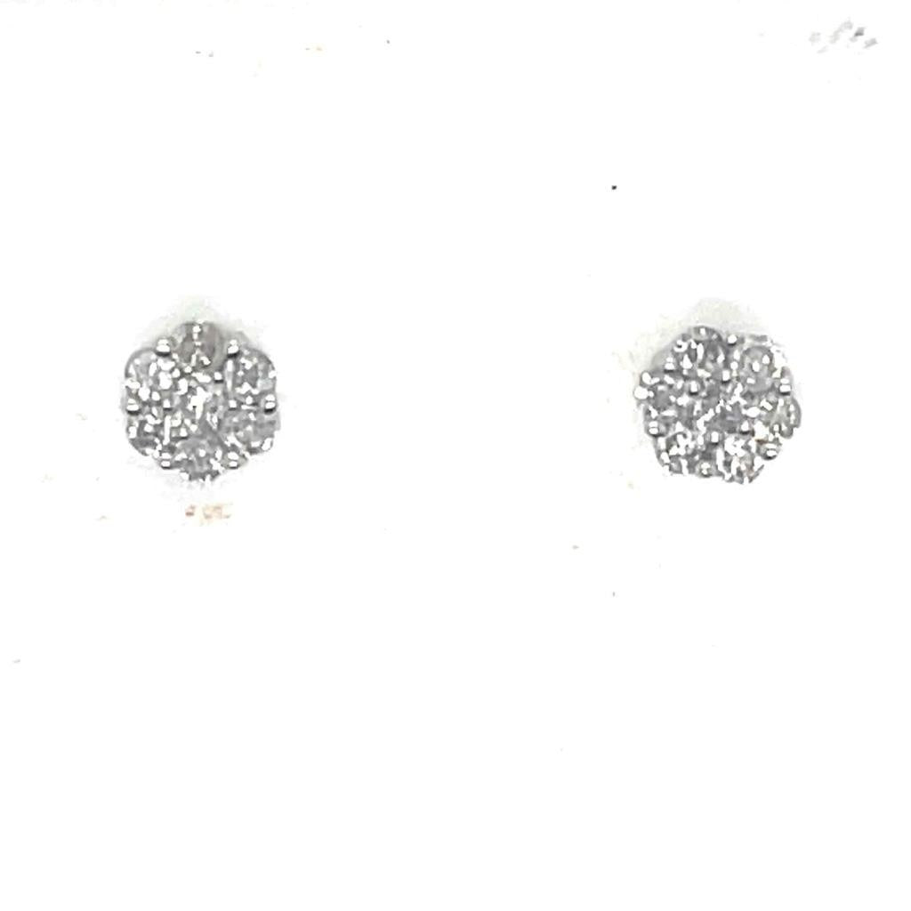 10k White Gold 1/4ct Round Flower Cluster Diamond Earrings
