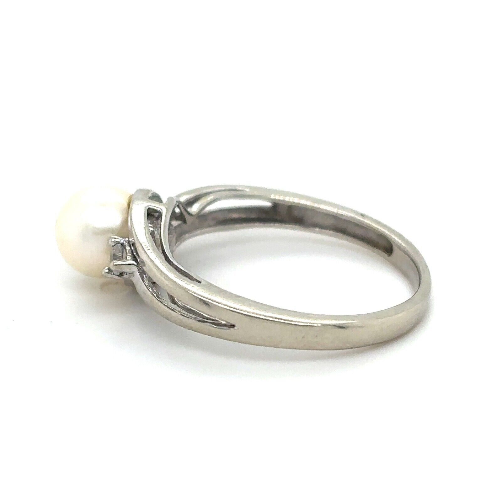 10K White Gold Pearl & Diamond Accent Ring Size 6 Elegant Design 2.1g Size 5.5