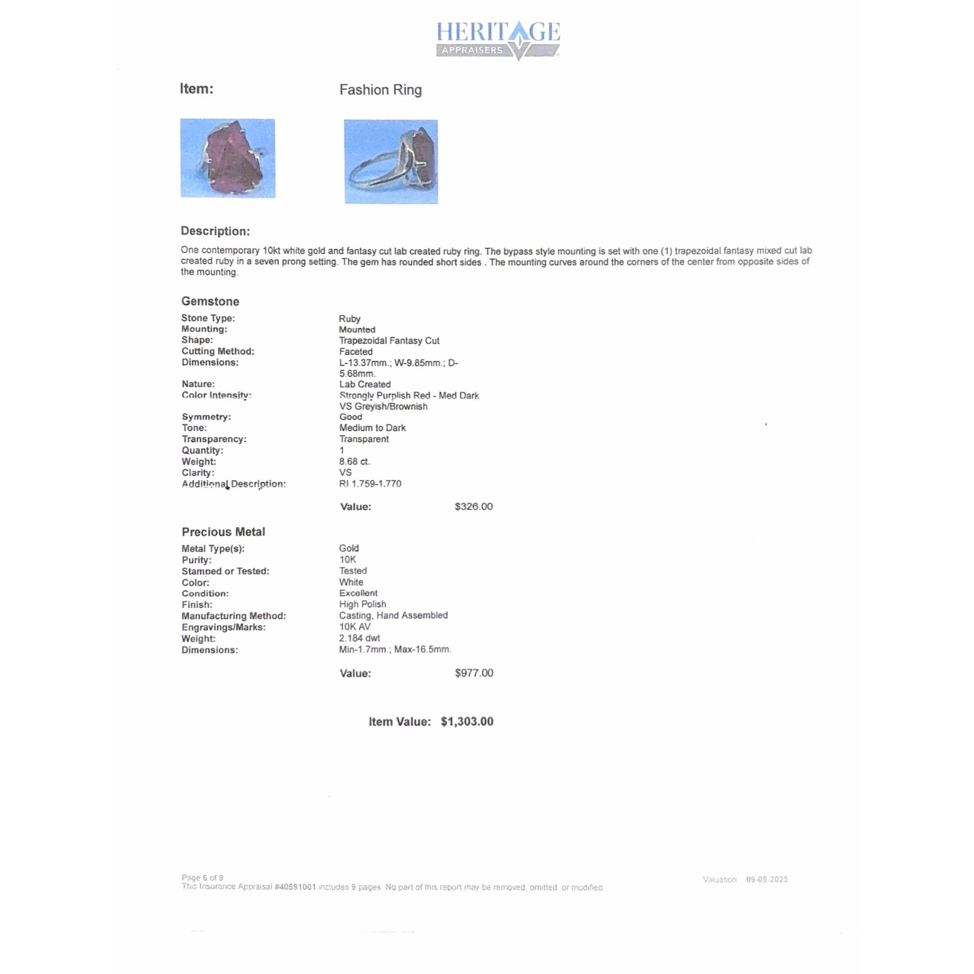 (Item comes with insurance appraisal shown)