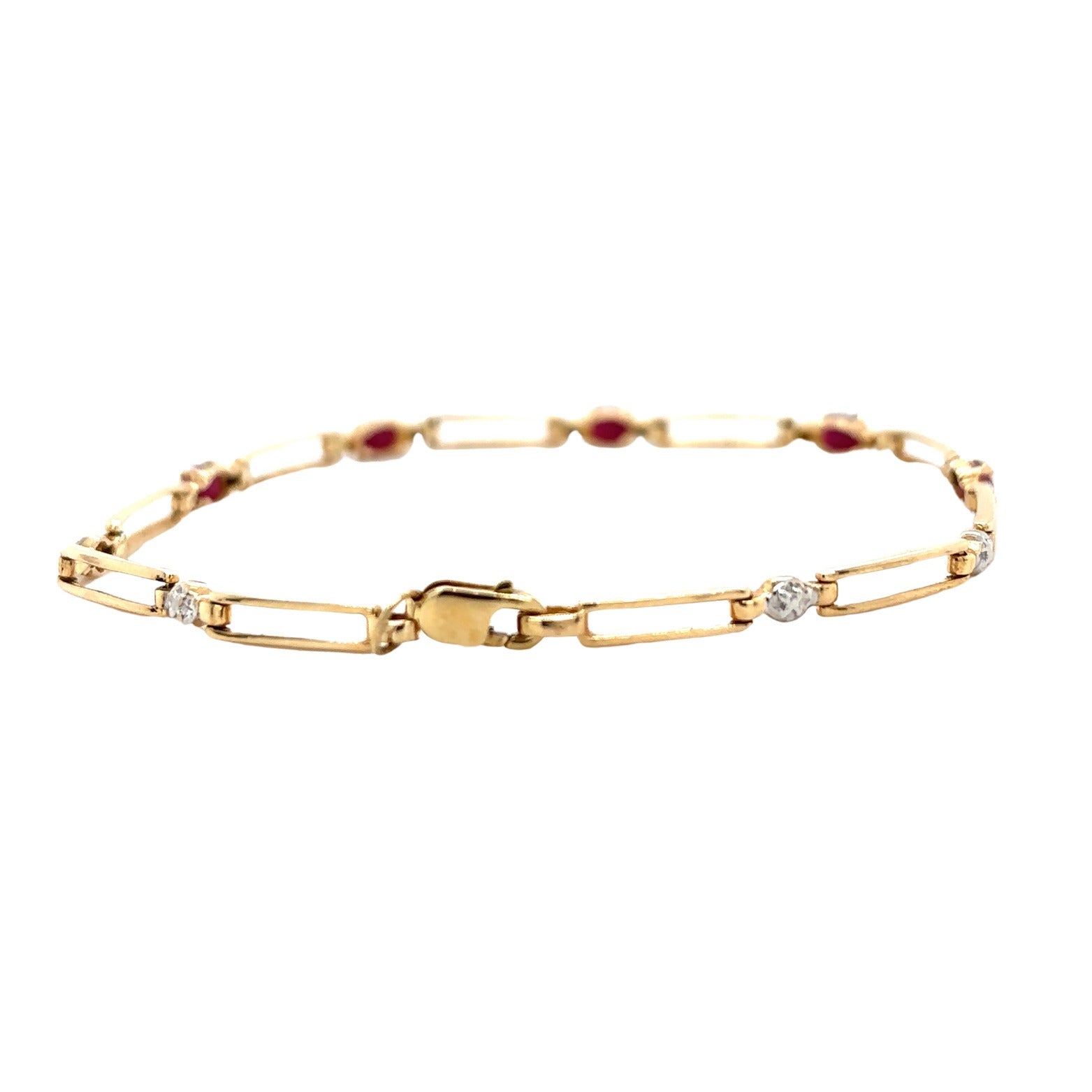 10k Yellow Gold 1.25ctw Ruby 7 inch Bracelet with Diamond Accents 3.9g