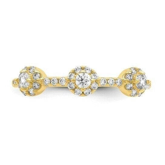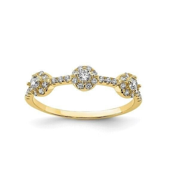 This 10K yellow gold ring showcases three exquisite CZ clusters, offering a sophisticated sparkle. Its lightweight, elegant design enhances any refined look, making it a versatile piece for adding a touch of elegance to any ensemble. The craftsmanship highlights the clarity and brilliance of the diamonds, ensuring lasting beauty.