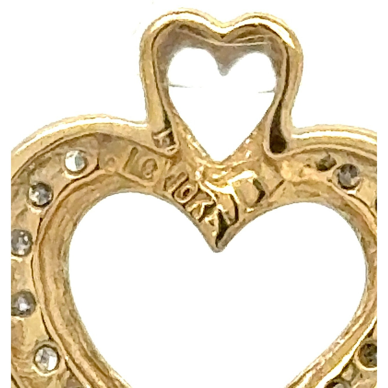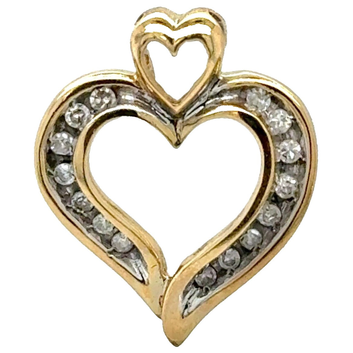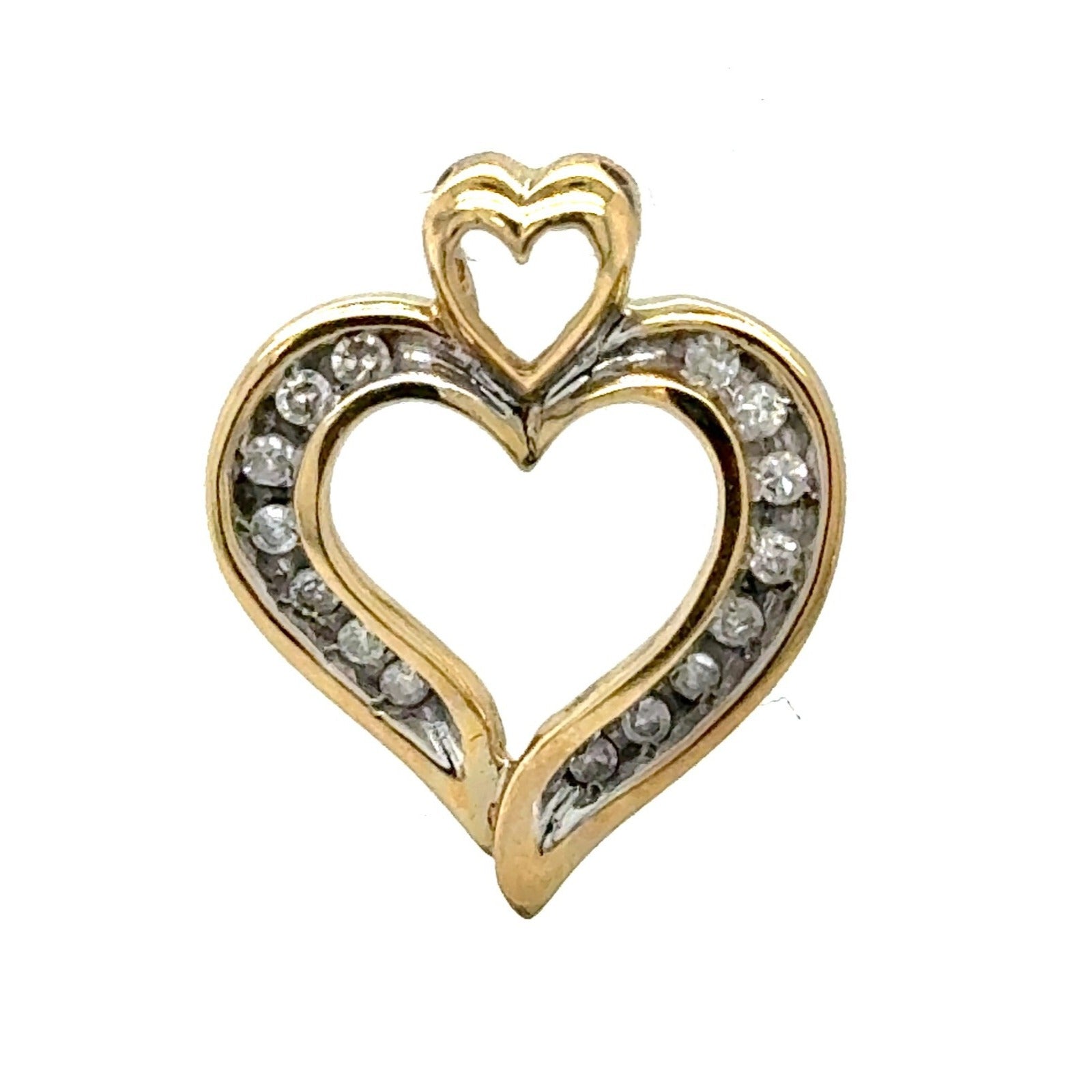 10K Yellow Gold Heart Pendant With 15 Round Natural Diamonds 0.25 CTW Double Heart Design 1.5g Weight