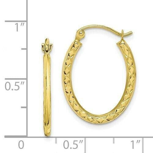 10K Yellow Gold Textured Hollow Oval Hoop Earrings