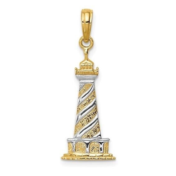 10K Yellow Gold Rhodium Plate Cape Hatteras Lighthouse Pendant