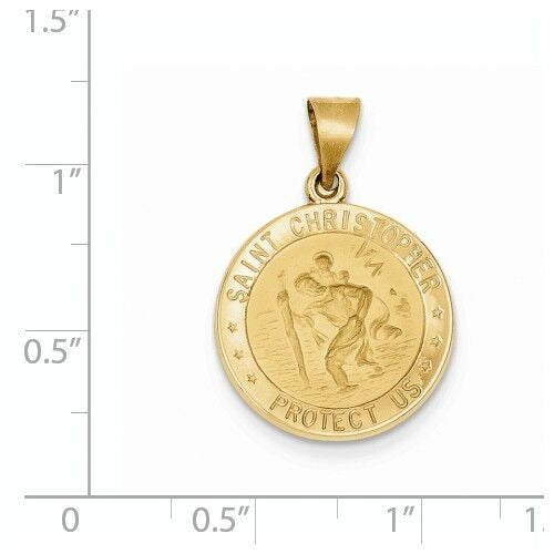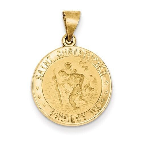 14k Polished and Satin St. Christopher Medal Hollow Charm Pendant