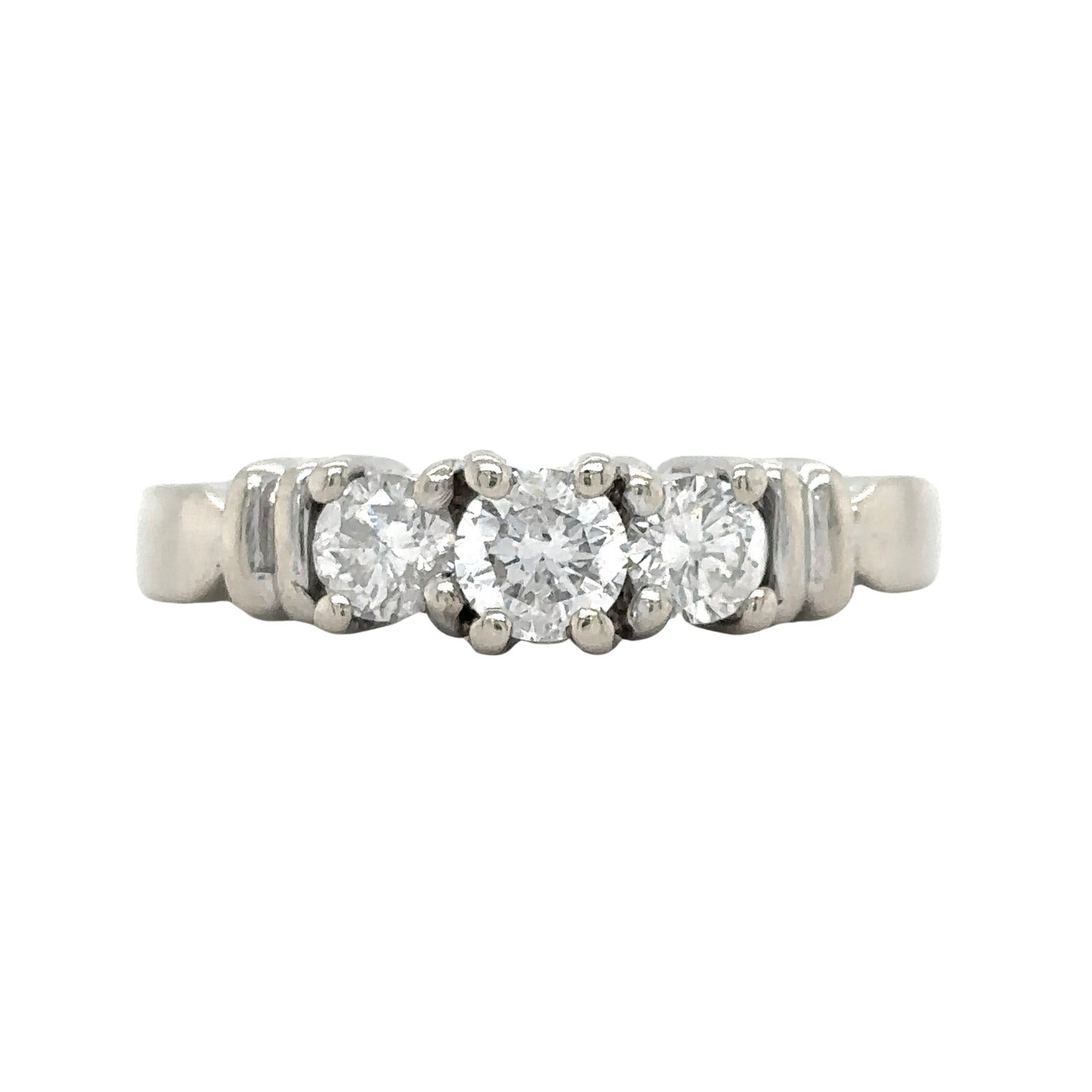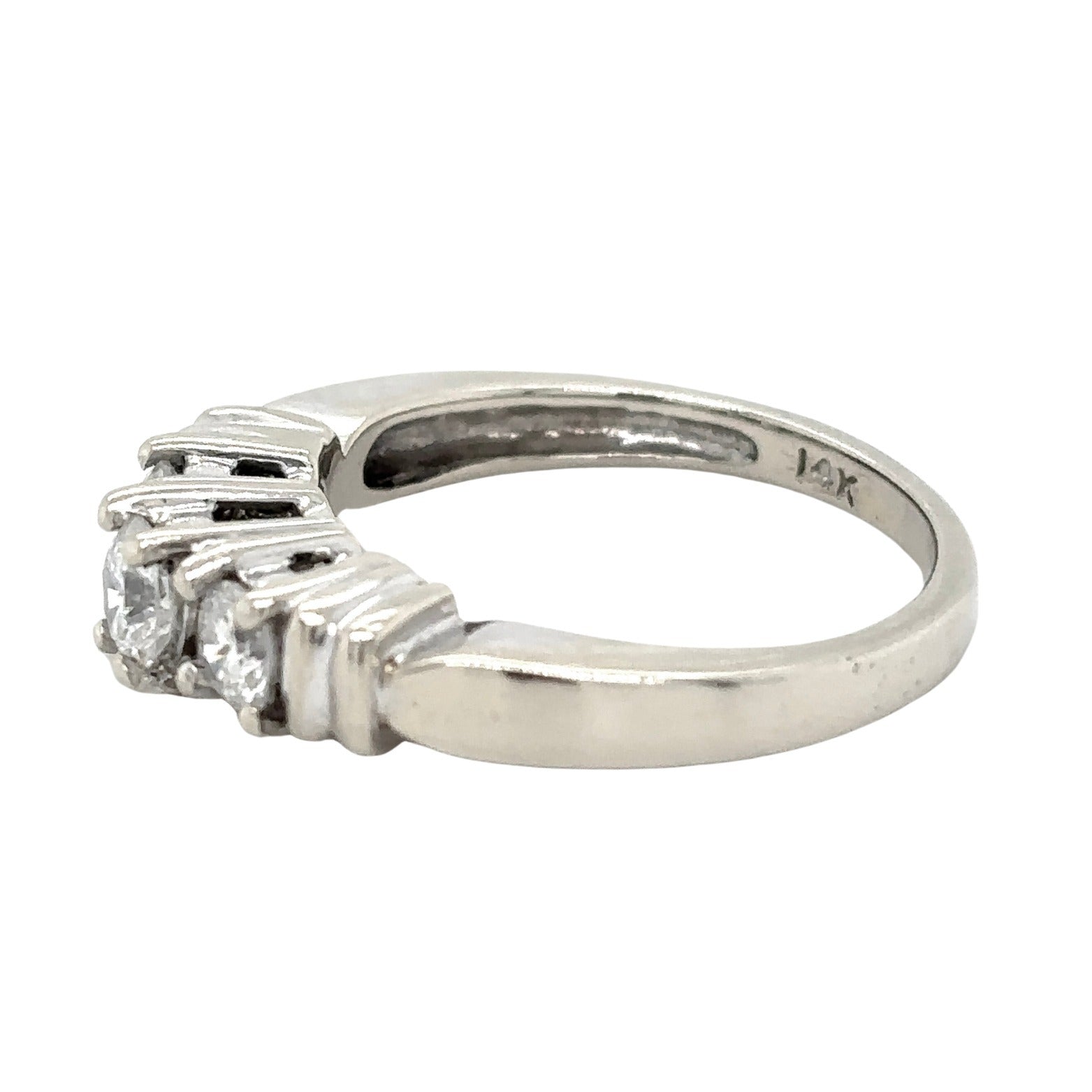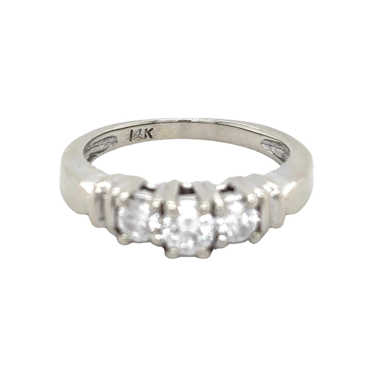 14k White Gold 1/2ctw Three-Stone Diamond Size 4.75 Engagement Ring 3.4g