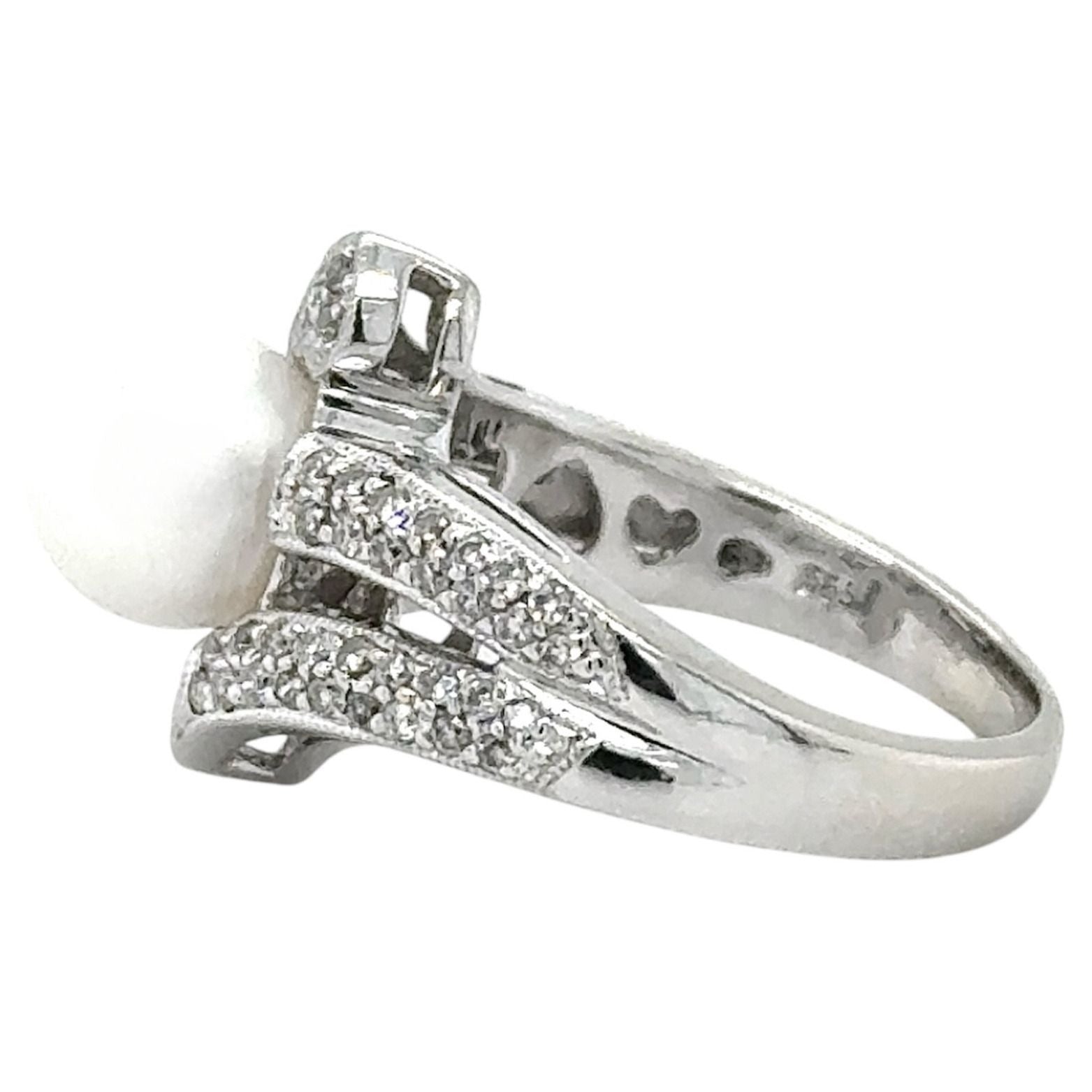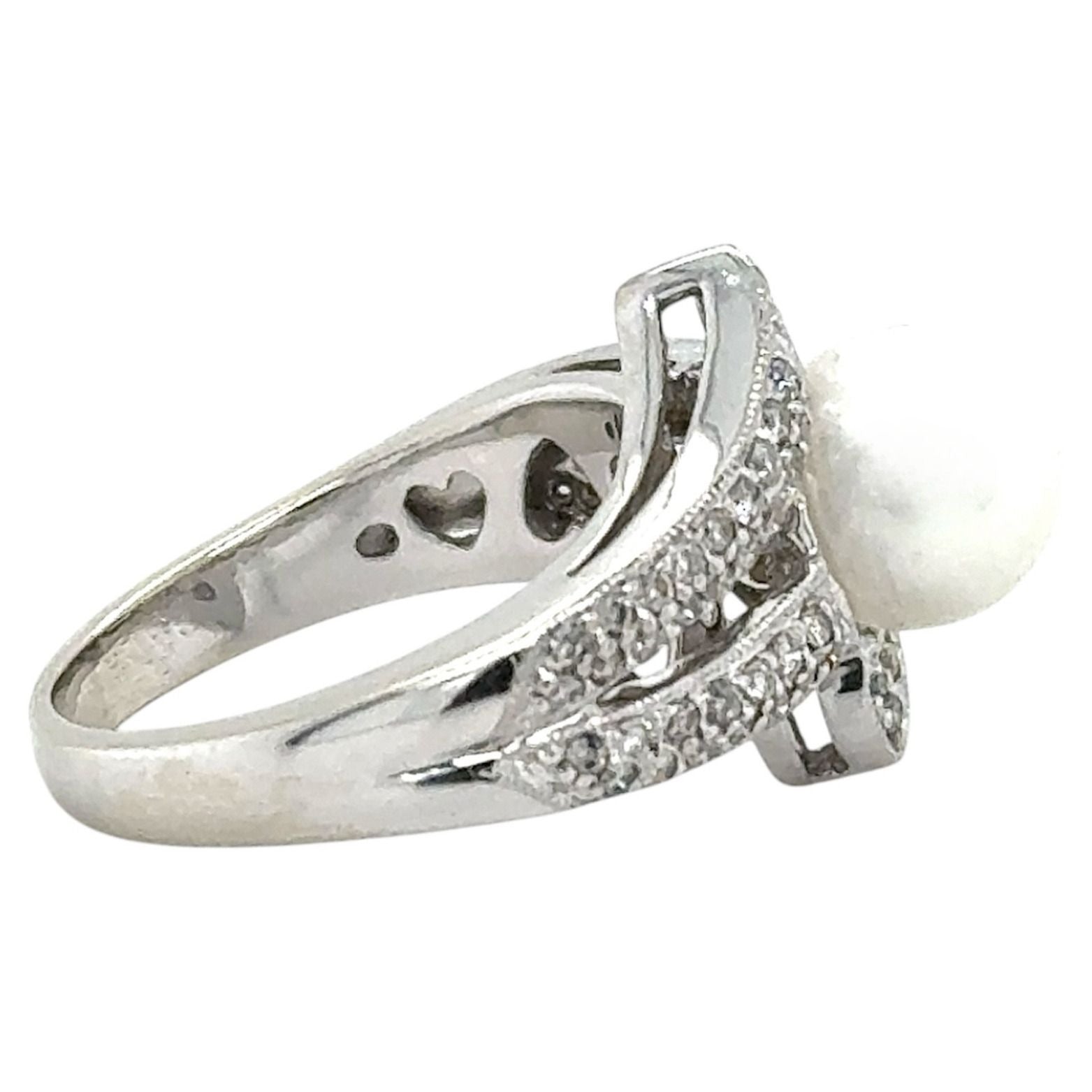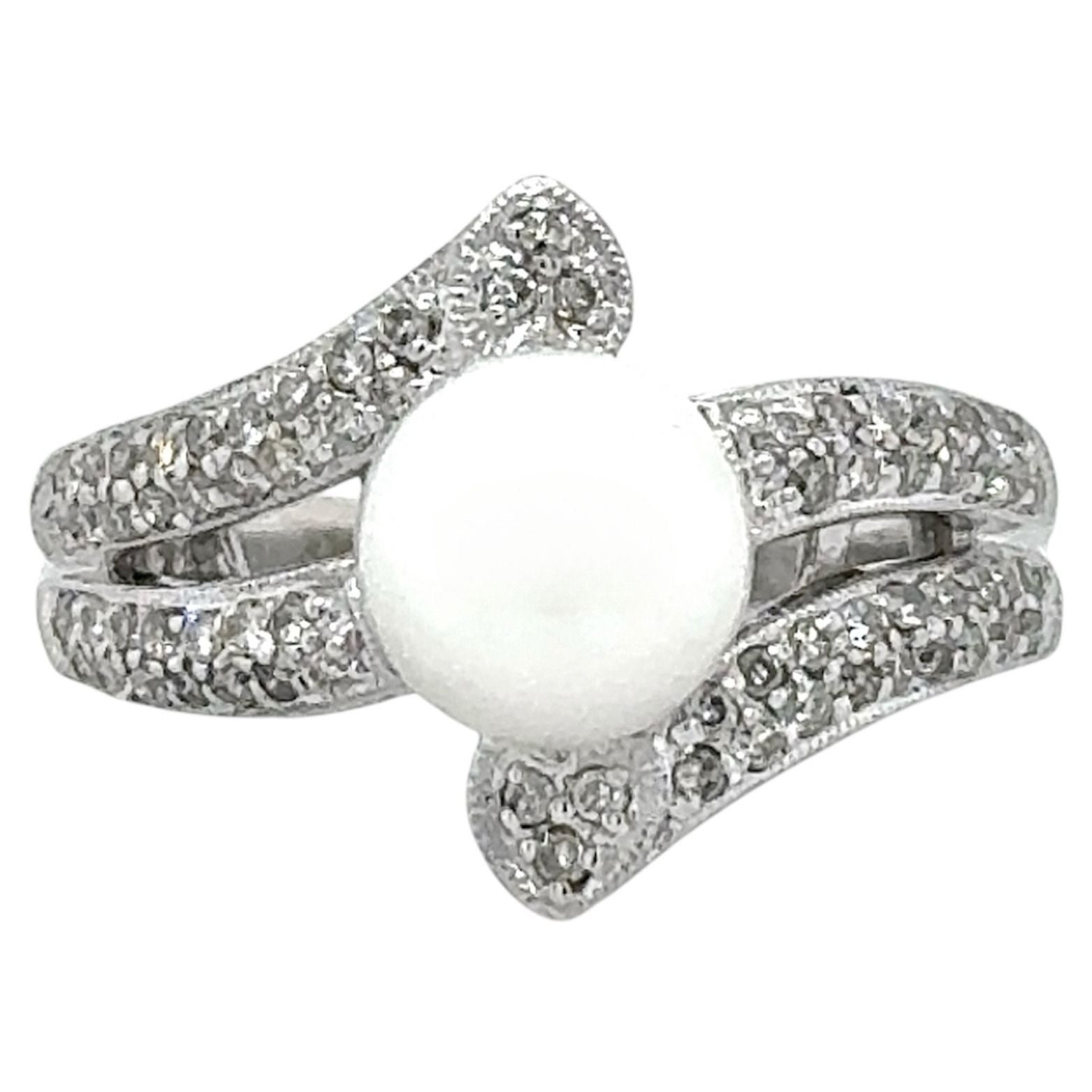 14k White Gold 8mm Pearl Solitaire & 1/3ctw Diamond Accents 6.4g Size 6.25 Ring