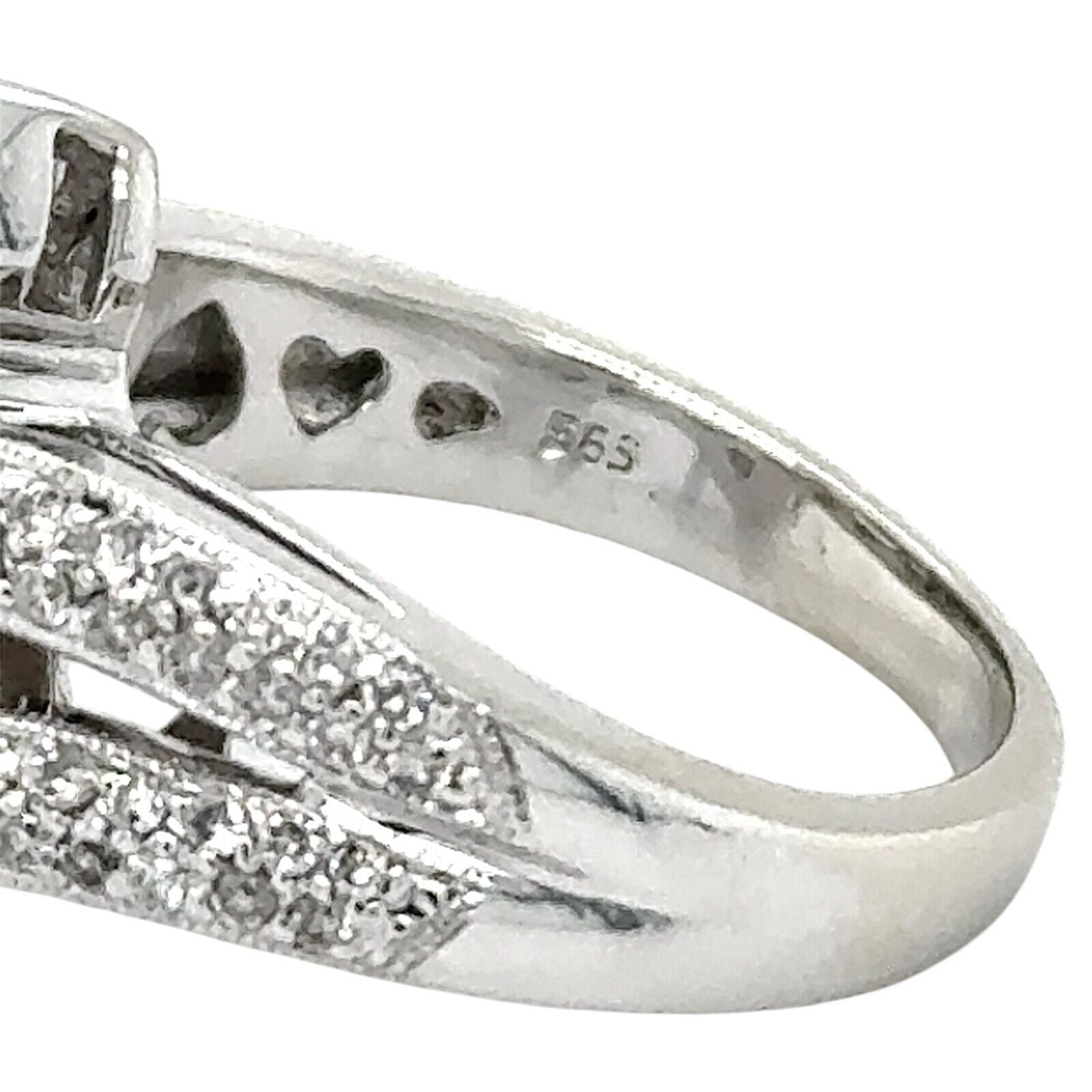 This stunning 14k white gold ring features a beautiful 8mm pearl as the main stone, surrounded by 70 dazzling diamonds. The ring is perfect for any occasion. The seller also offers a warranty for added peace of mind. The ring's style is a solitaire with accents, and it is available in size 6.25. The total carat weight of diamonds is 1/3, and the clarity grade is included (I1-3). This ring is a must-have for anyone looking for a statement piece that exudes beauty and elegance.