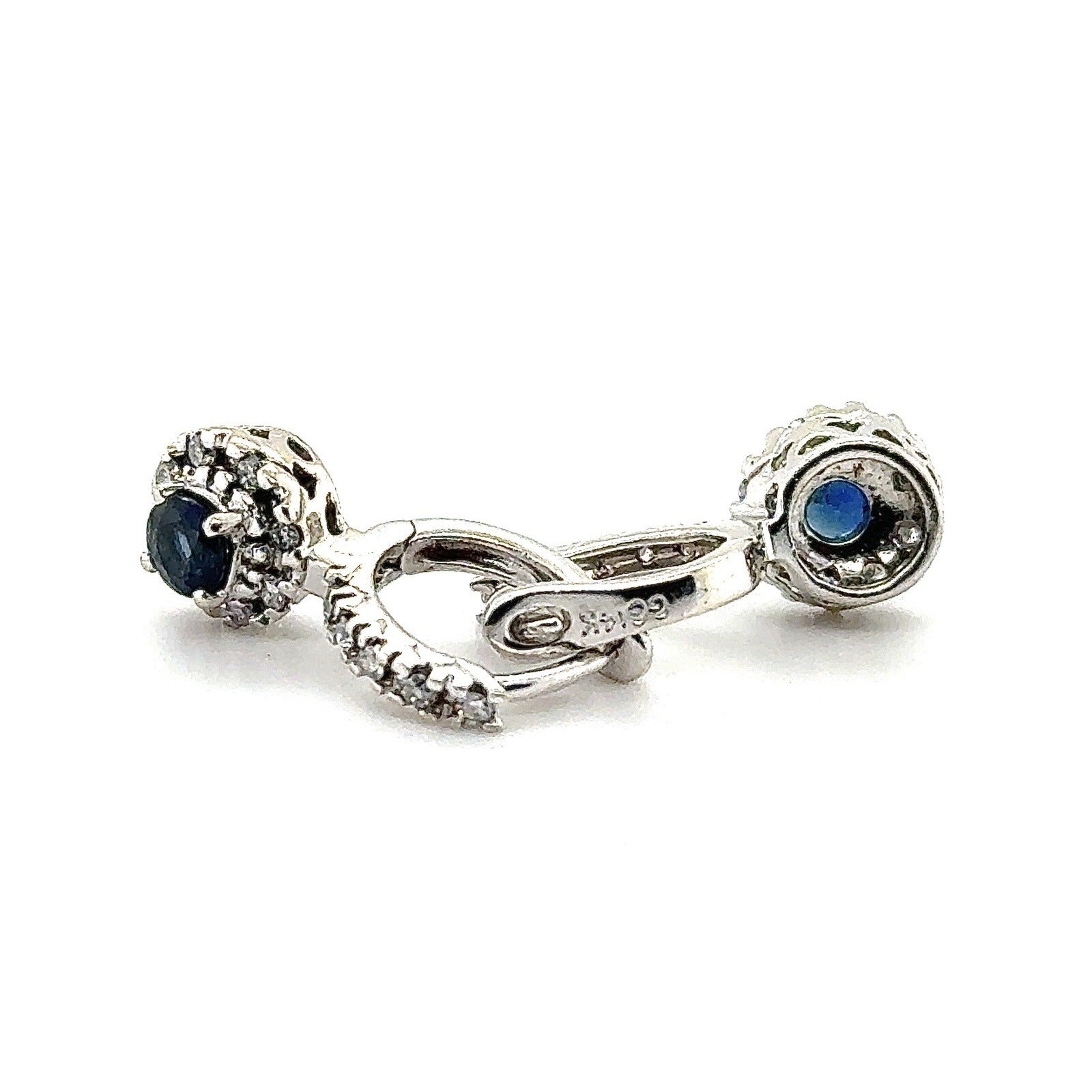 14K White Gold Sapphire & Diamond Dangle Earrings 3g