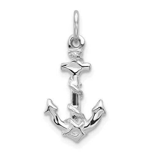 14K White Gold Diamond-Cut 3D Anchor Charm Pendant
