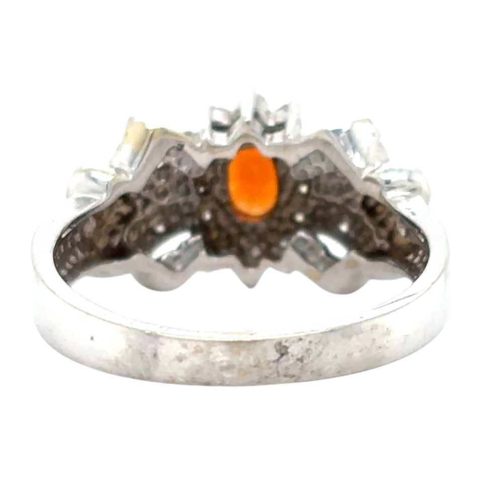 14k White Gold Spessarite Garnet & Diamond Ring 4.3g Size 6.5