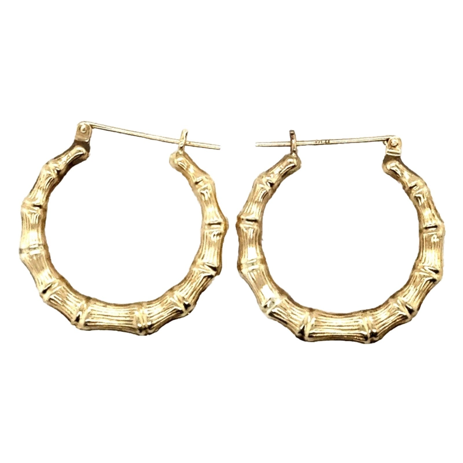 14K Yellow Gold Bamboo Style Hoop Earrings 1.4g