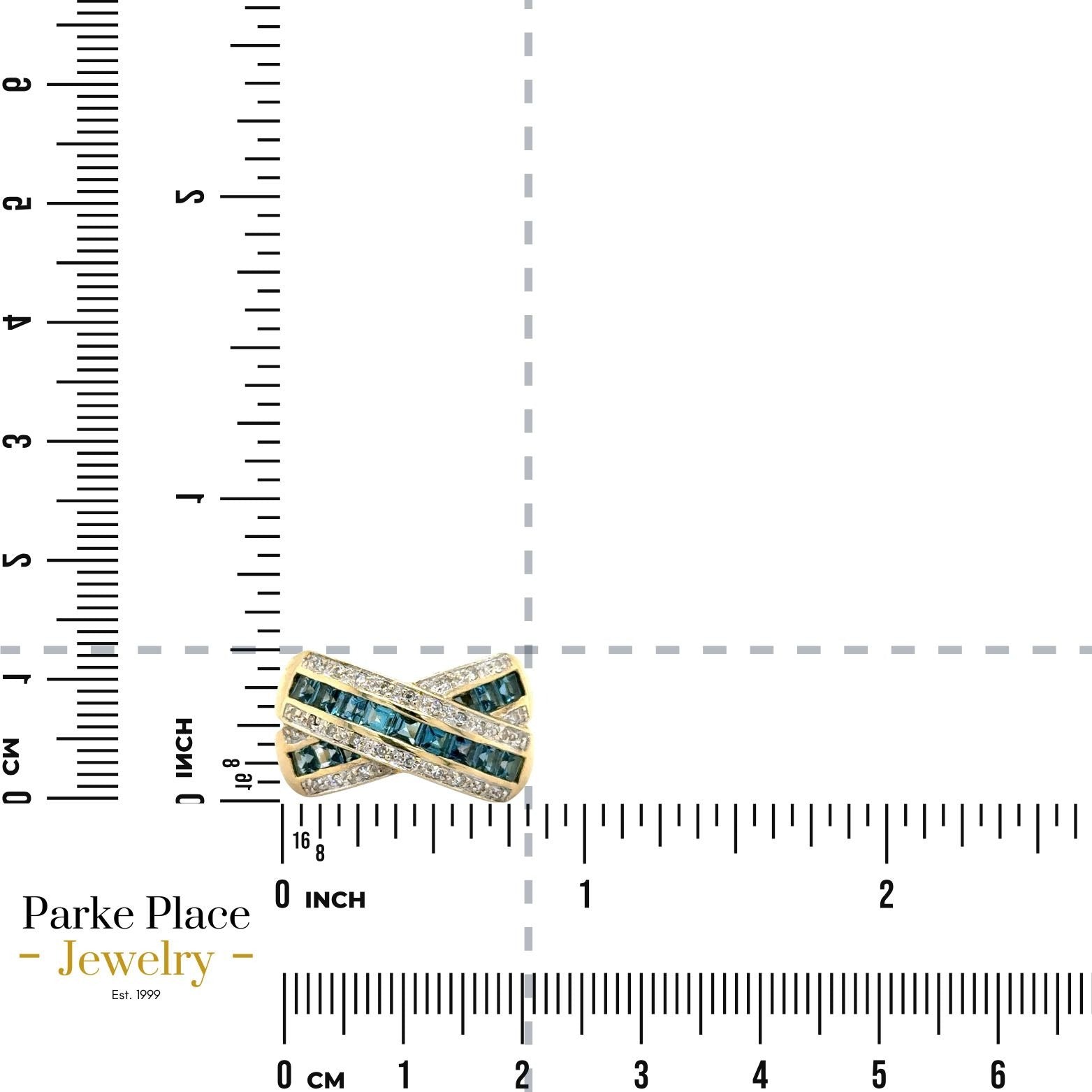 Crafted with elegance, this 14k yellow gold ring is adorned with 26 stunning blue topaz stones as the centerpiece, complemented by 28 sparkling diamonds. The ring's band style is enhanced by the shimmering diamonds, adding a touch of luxury to any occasion. With a ring size of 9, it's designed to be a statement piece for those special moments. The combination of yellow gold and blue topaz creates a classic look that's both versatile and eye-catching.