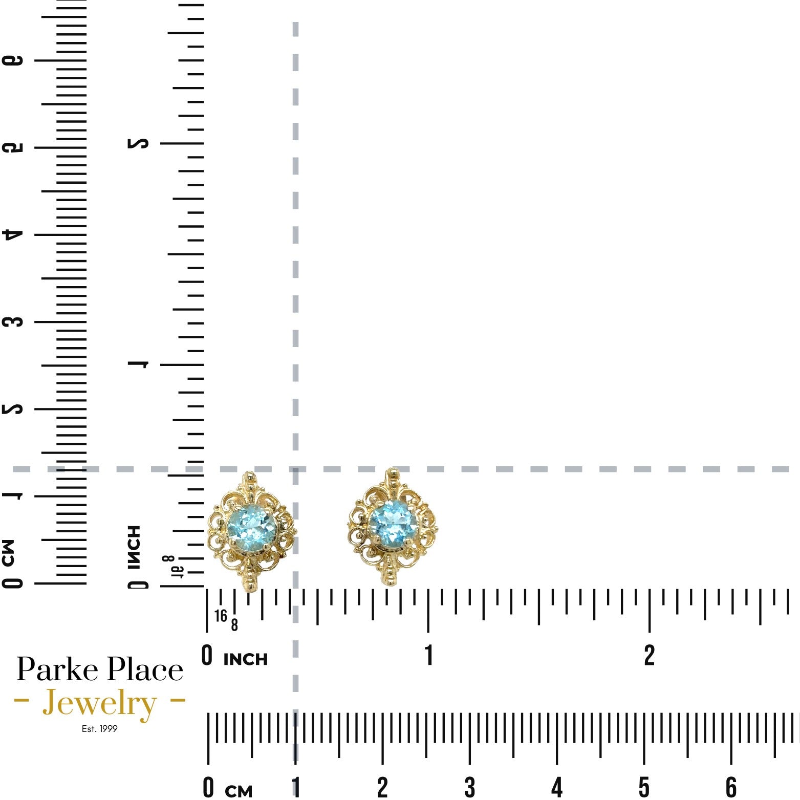 14k Yellow Gold Blue Topaz Solitaire Earrings 2.2g