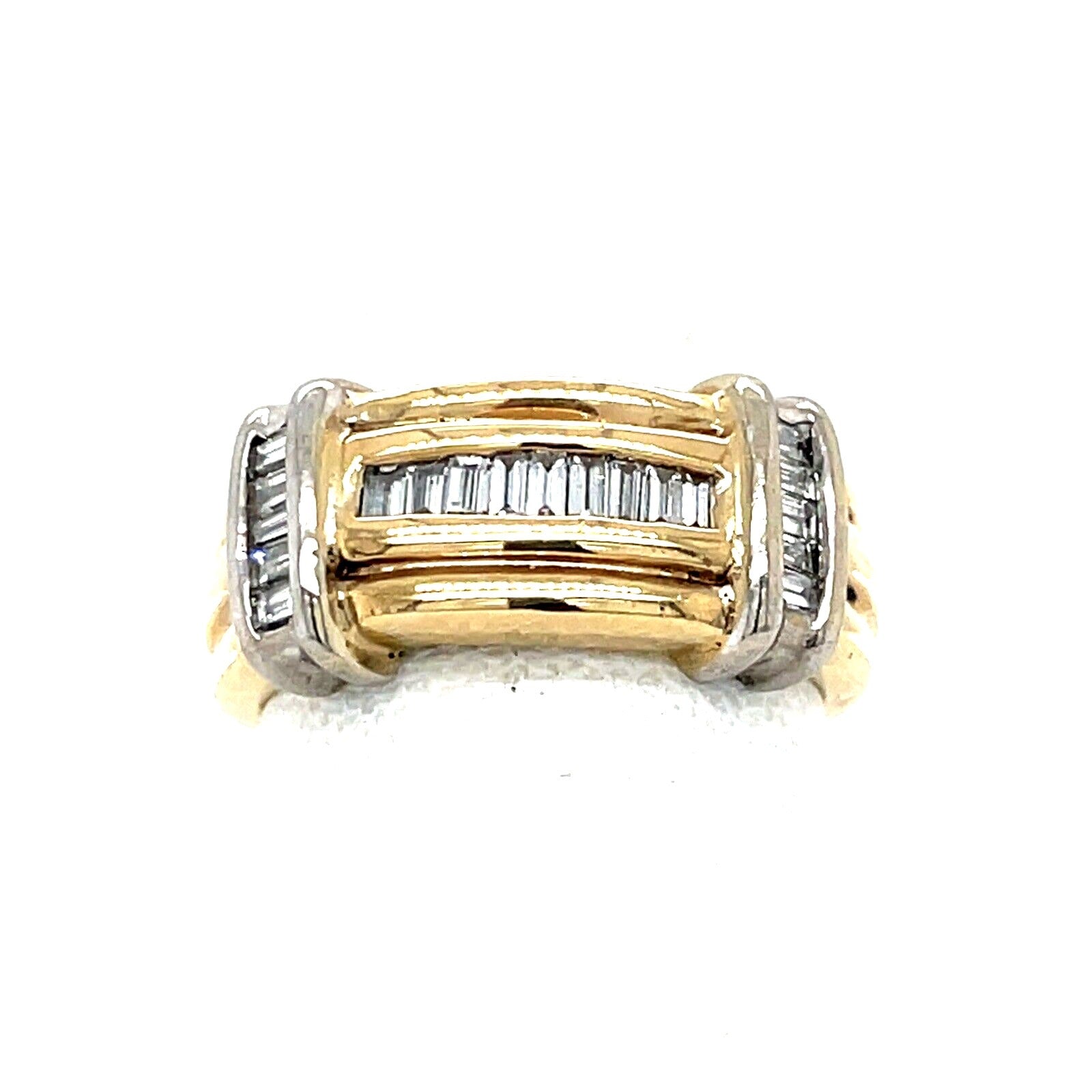 14K Yellow Gold Diamond Band Ring 1/2 CTW Baguette Cut SI Clarity Size 6 6.8g Elegant Design