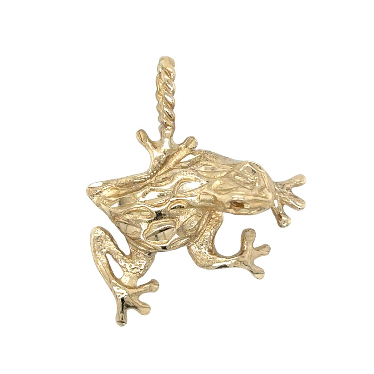 This is a beautiful 14k yellow gold frog pendant, weighing 4.1g. This pendant features a unique shape in the form of a frog, making it a charming accessory for any jewelry lover. It comes with a seller warranty for added peace of mind and is a perfect addition to any fine jewelry collection. Don't miss out on the opportunity to own this wonderful pendant!