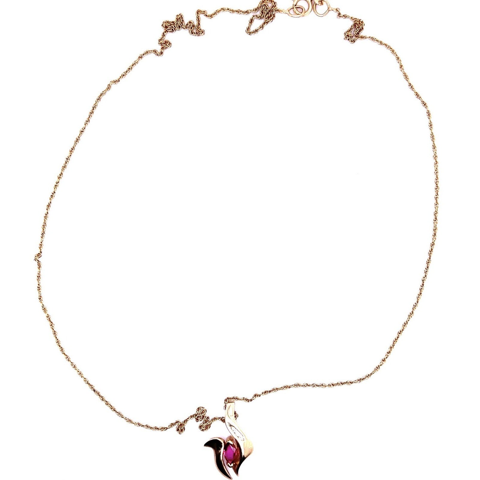 14k Yellow Gold Ruby & Diamond Pendant Necklace With 18" Chain 3.2g