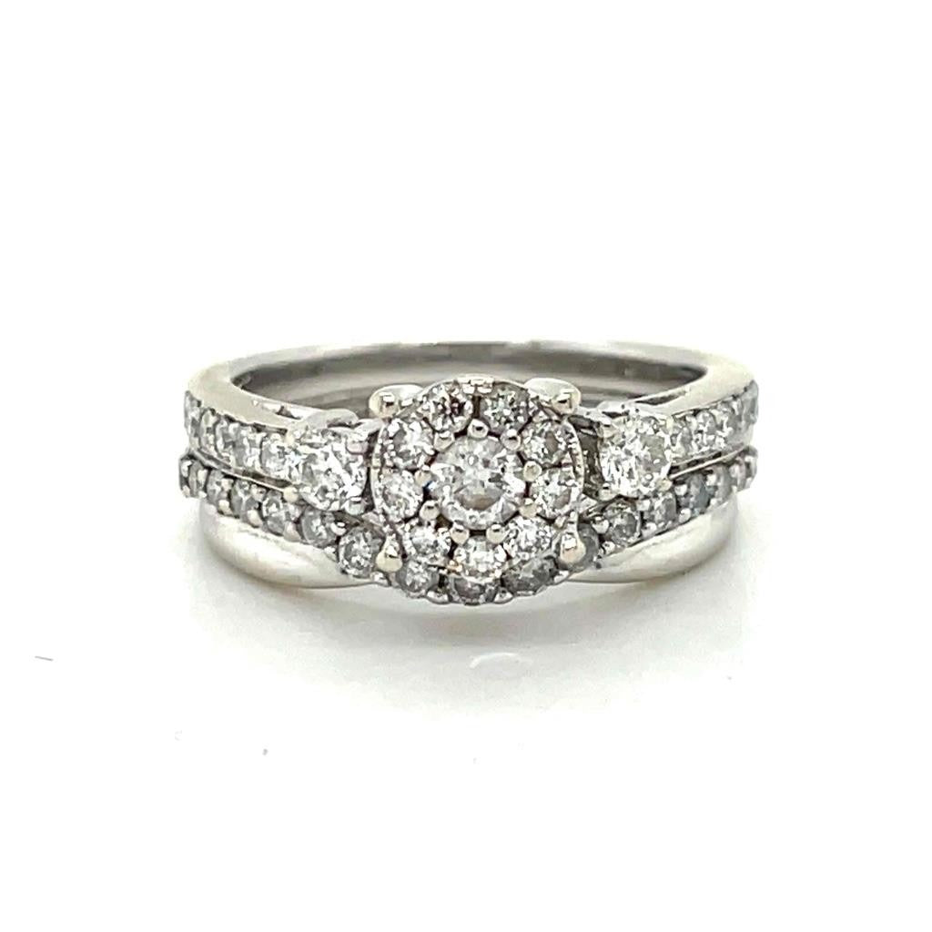 1ctw Diamond Bridal Wedding Ring 14K White Gold Size 5.25 Halo