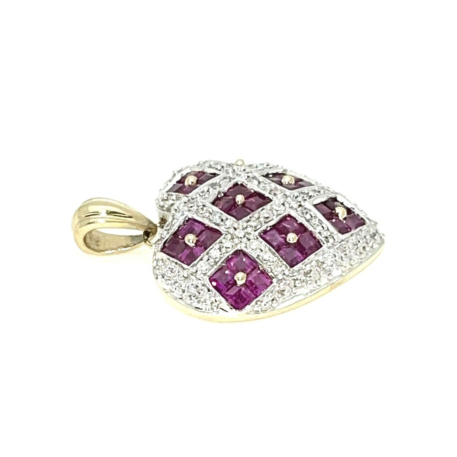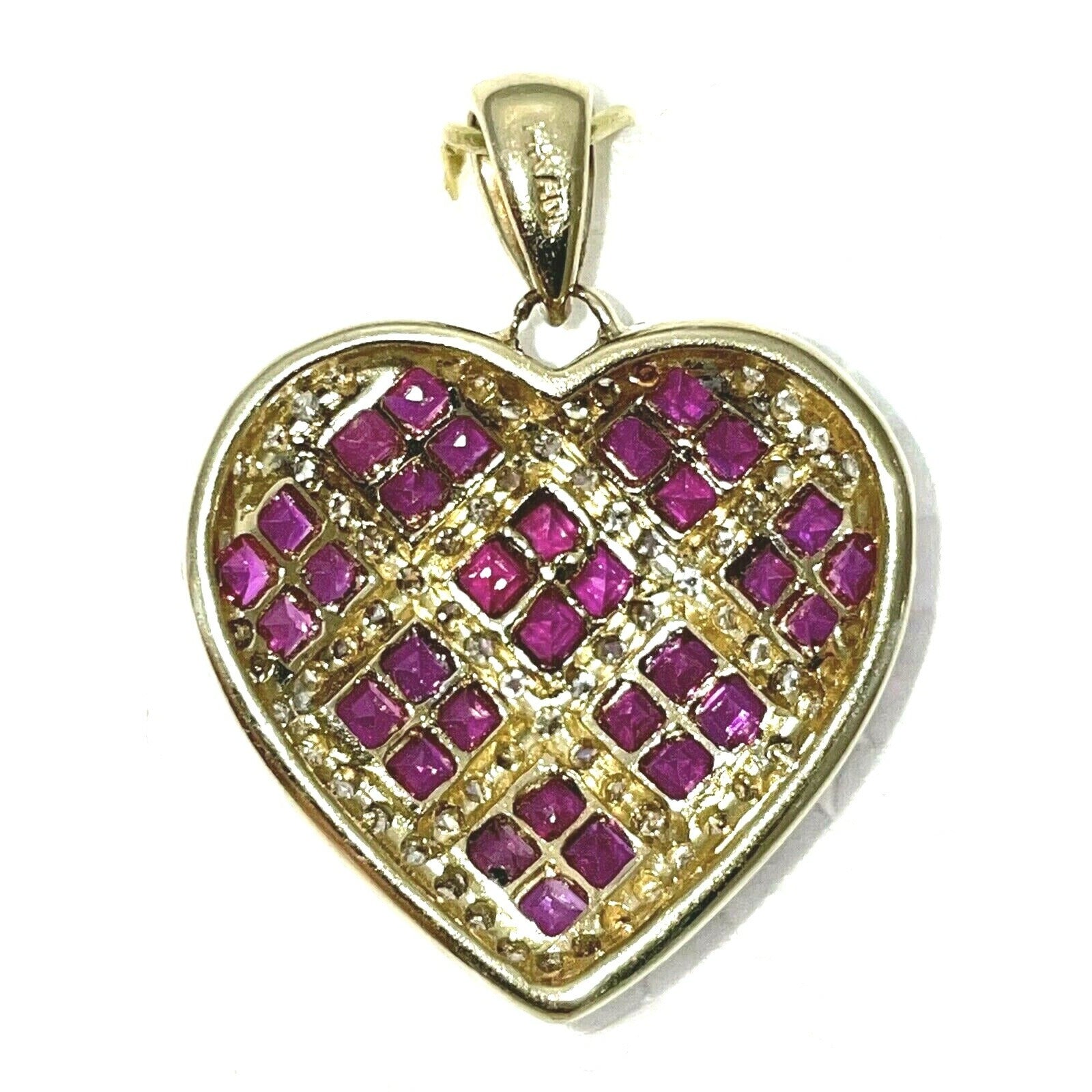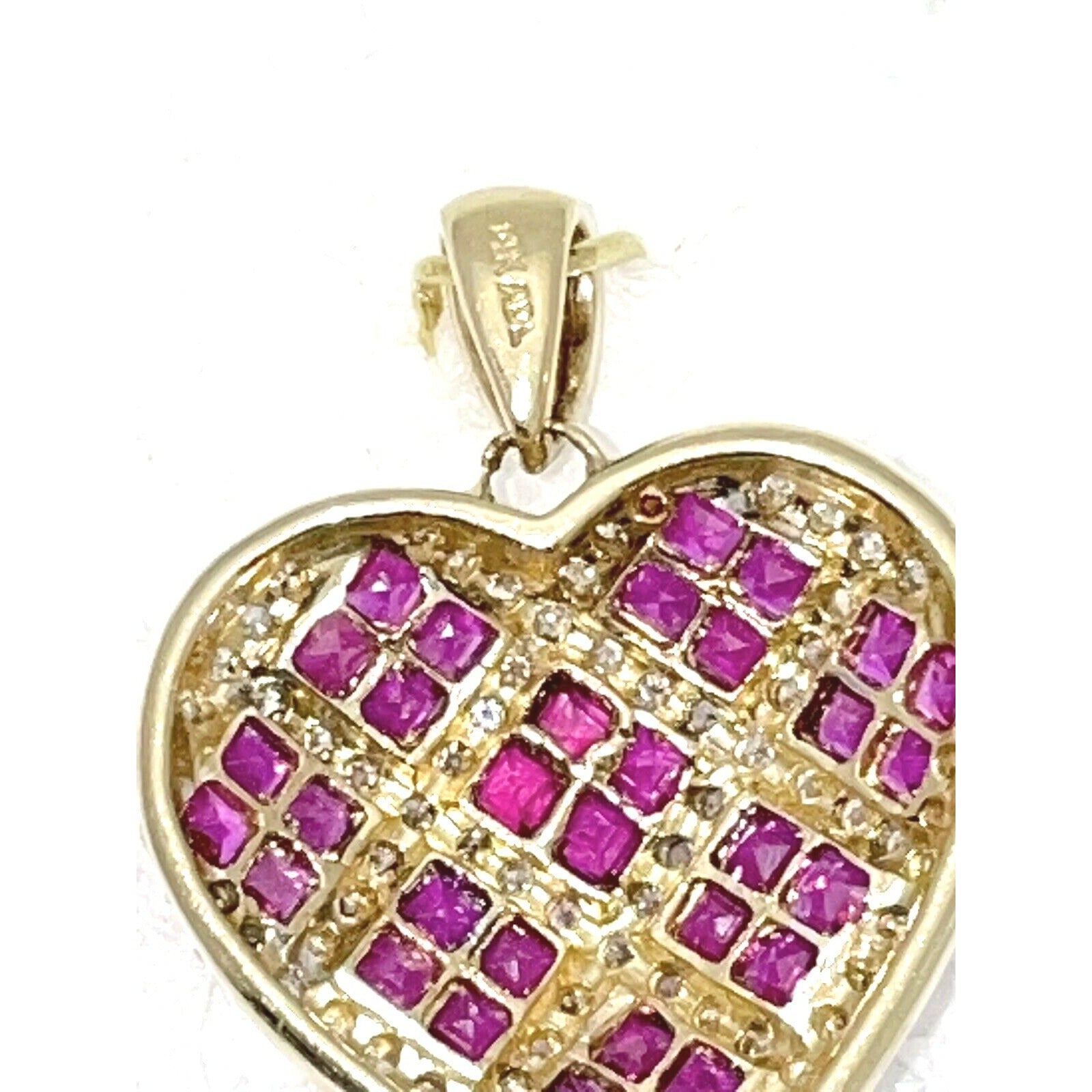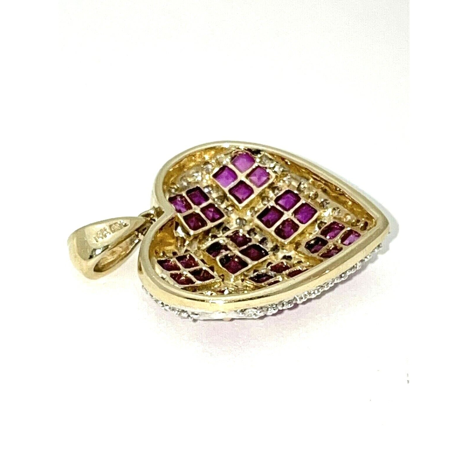 Elegant heart pendant featuring 1ctw red topaz and diamonds set in solid 14K yellow gold. Perfect for special occasions or daily wear. Adds a touch of luxury and charm to any outfit.
