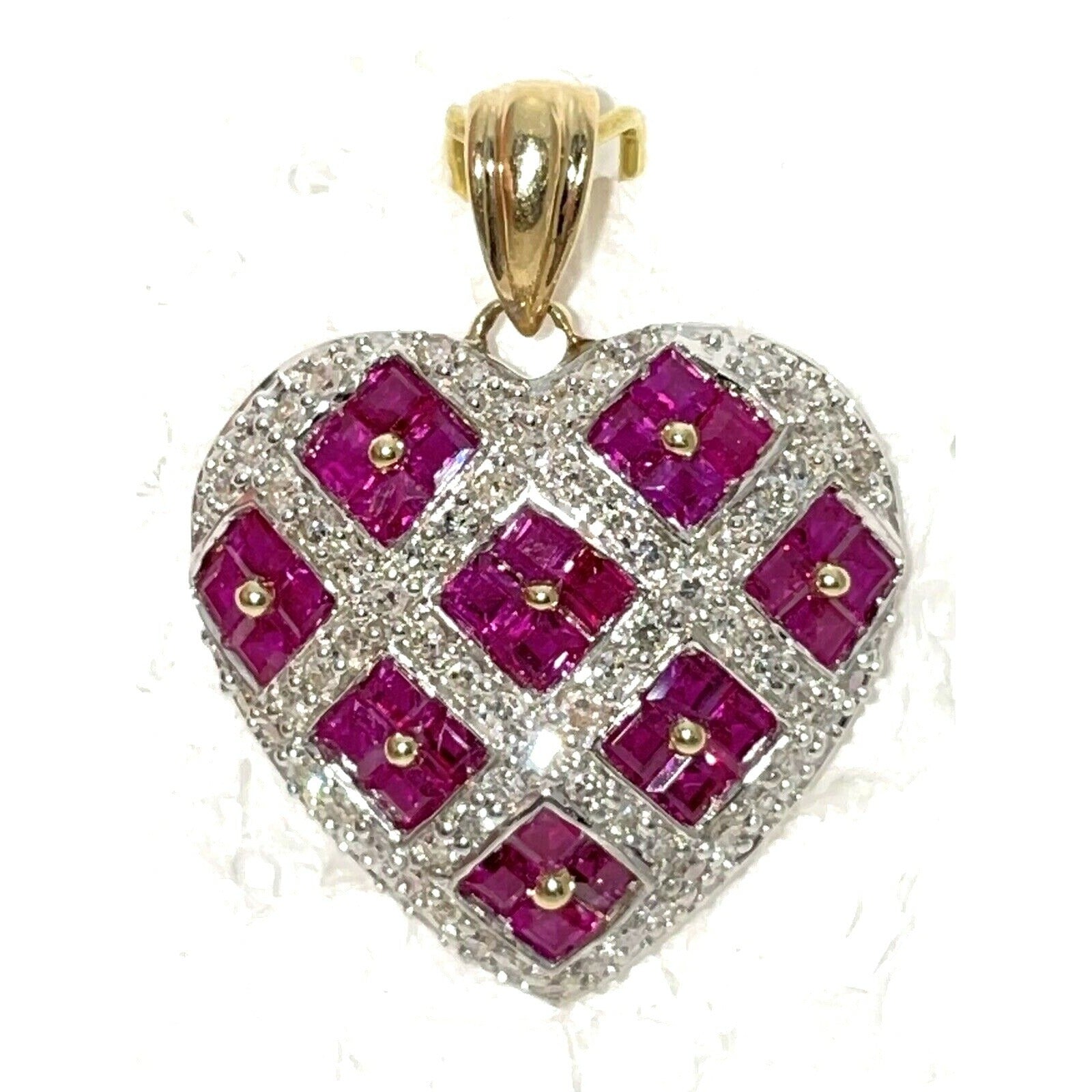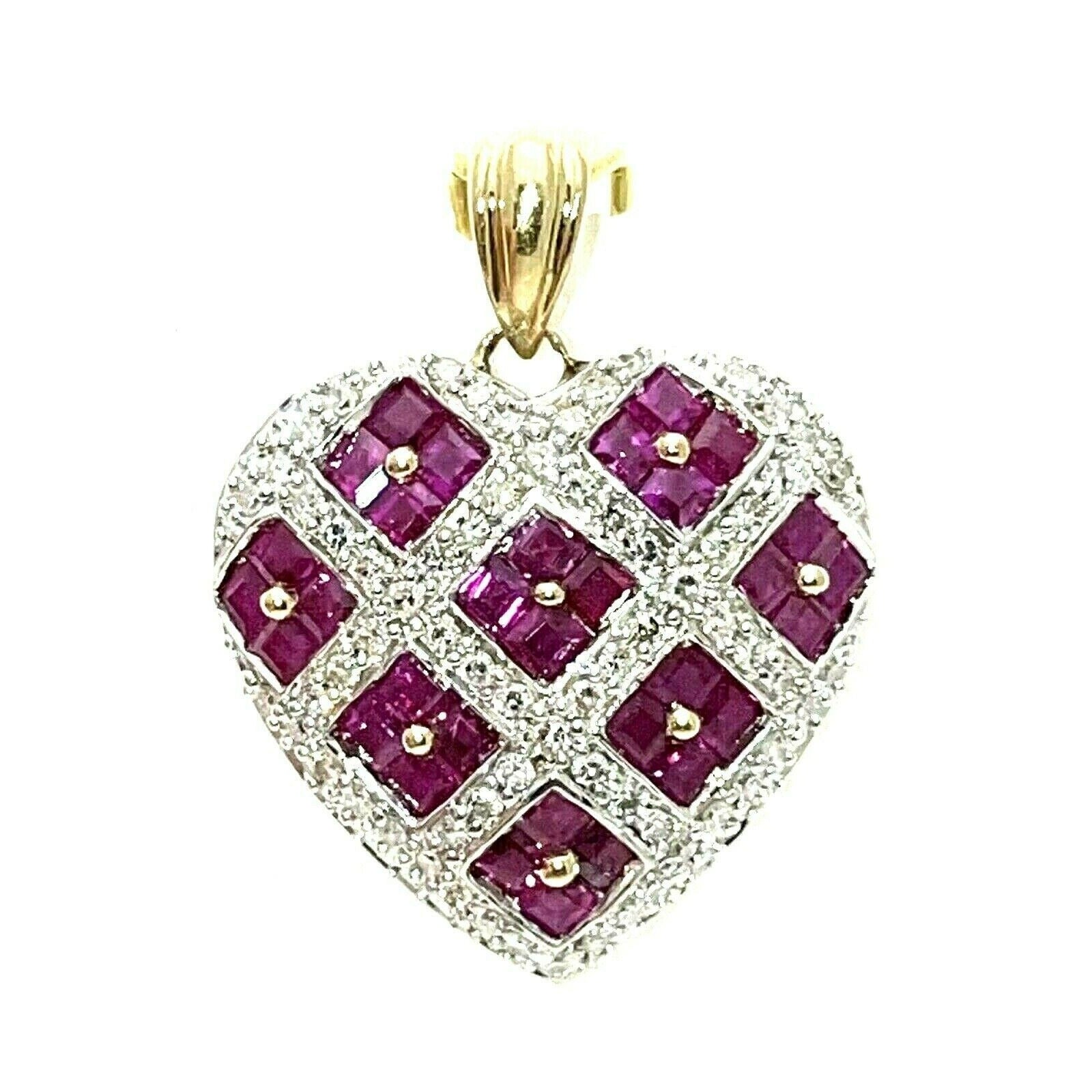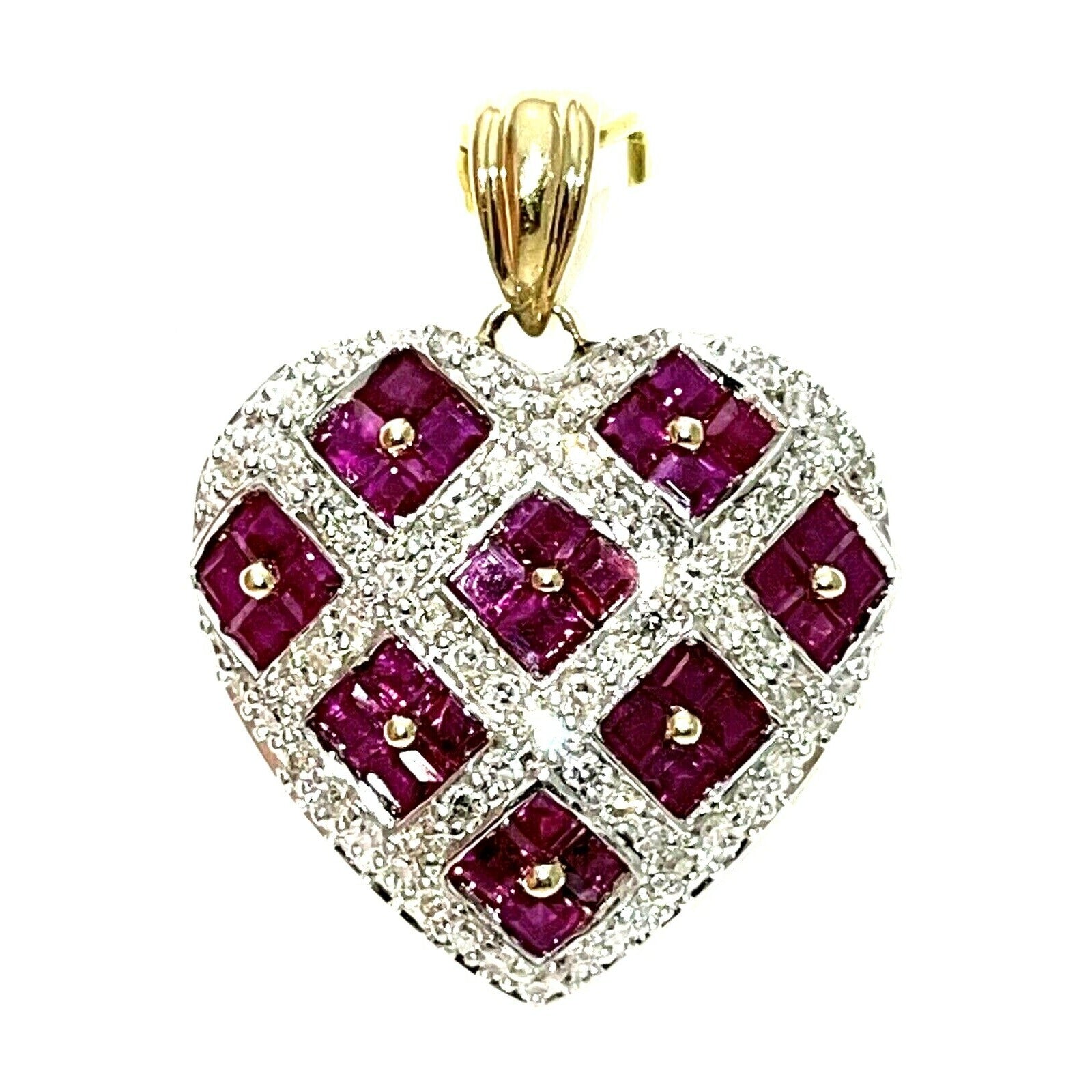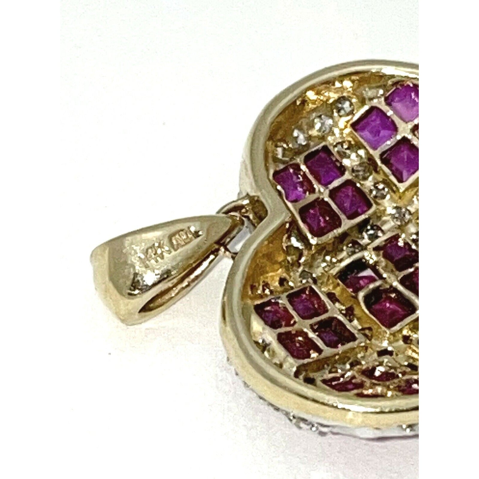 Elegant heart pendant featuring 1ctw red topaz and diamonds set in solid 14K yellow gold. Perfect for special occasions or daily wear. Adds a touch of luxury and charm to any outfit.