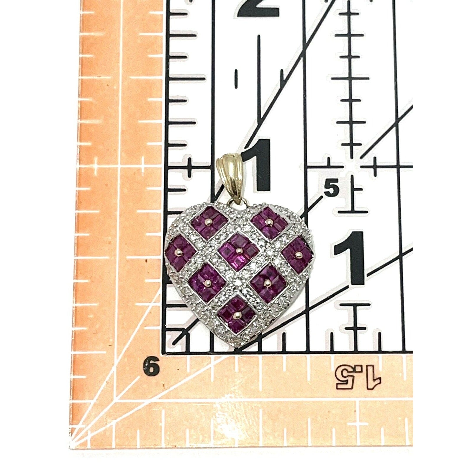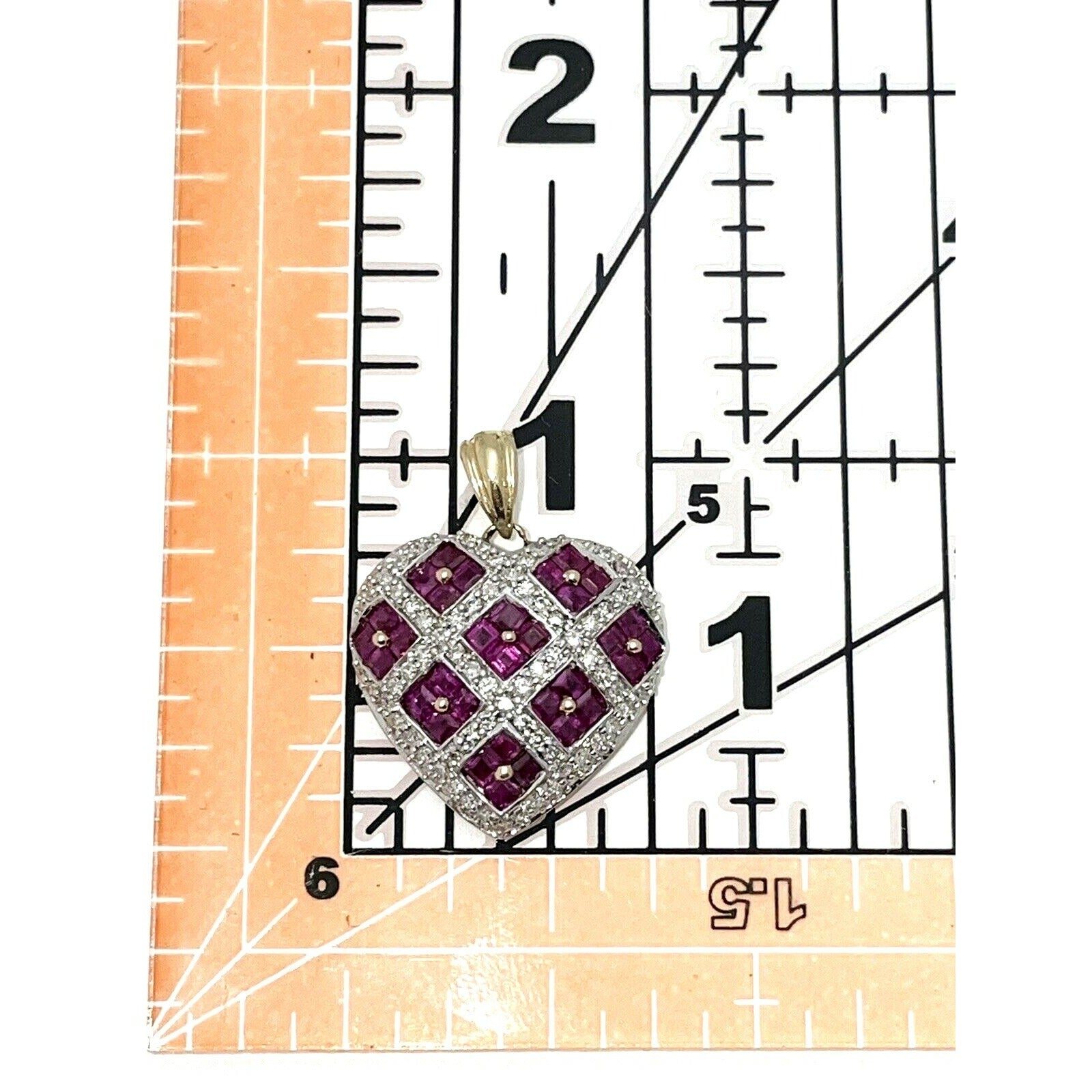 1ctw Red Topaz & Diamond Heart Pendant Real Solid 14K Yellow Gold 4.1g