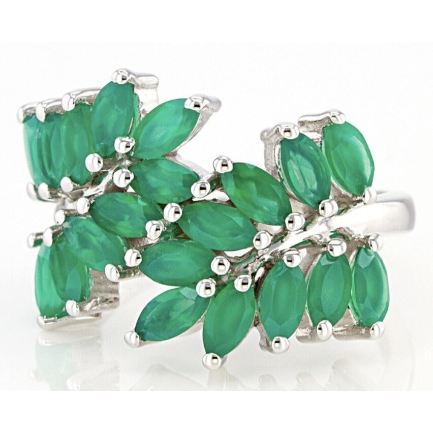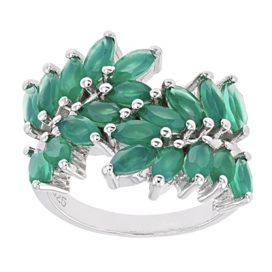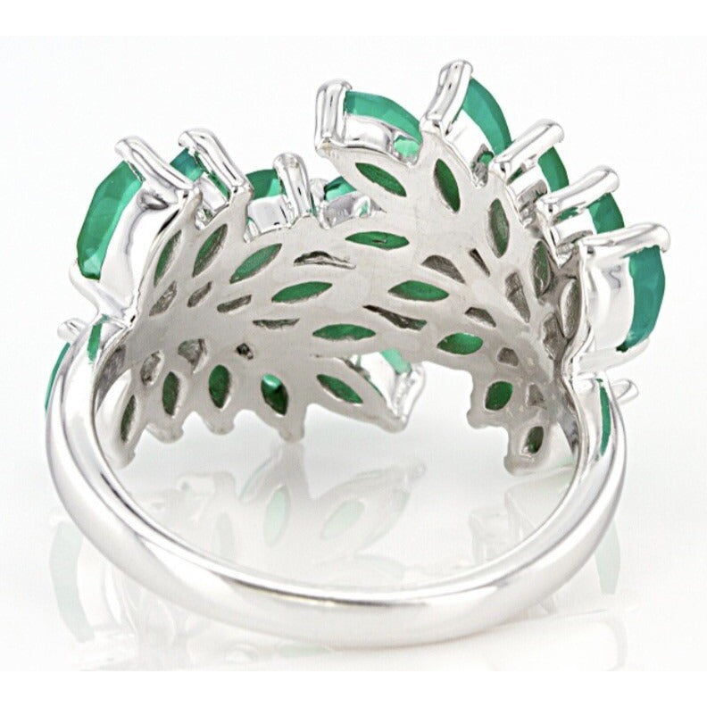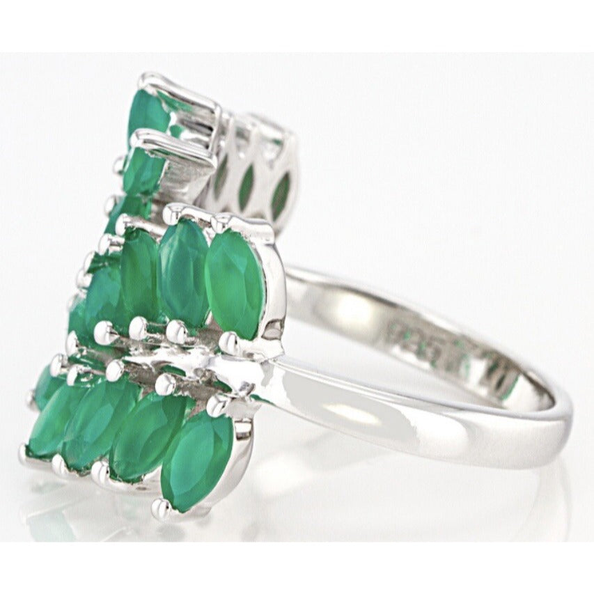 2.21ctw Marquise Green Onyx Rhodium Over Sterling Silver Bypass Ring Elegant Design
