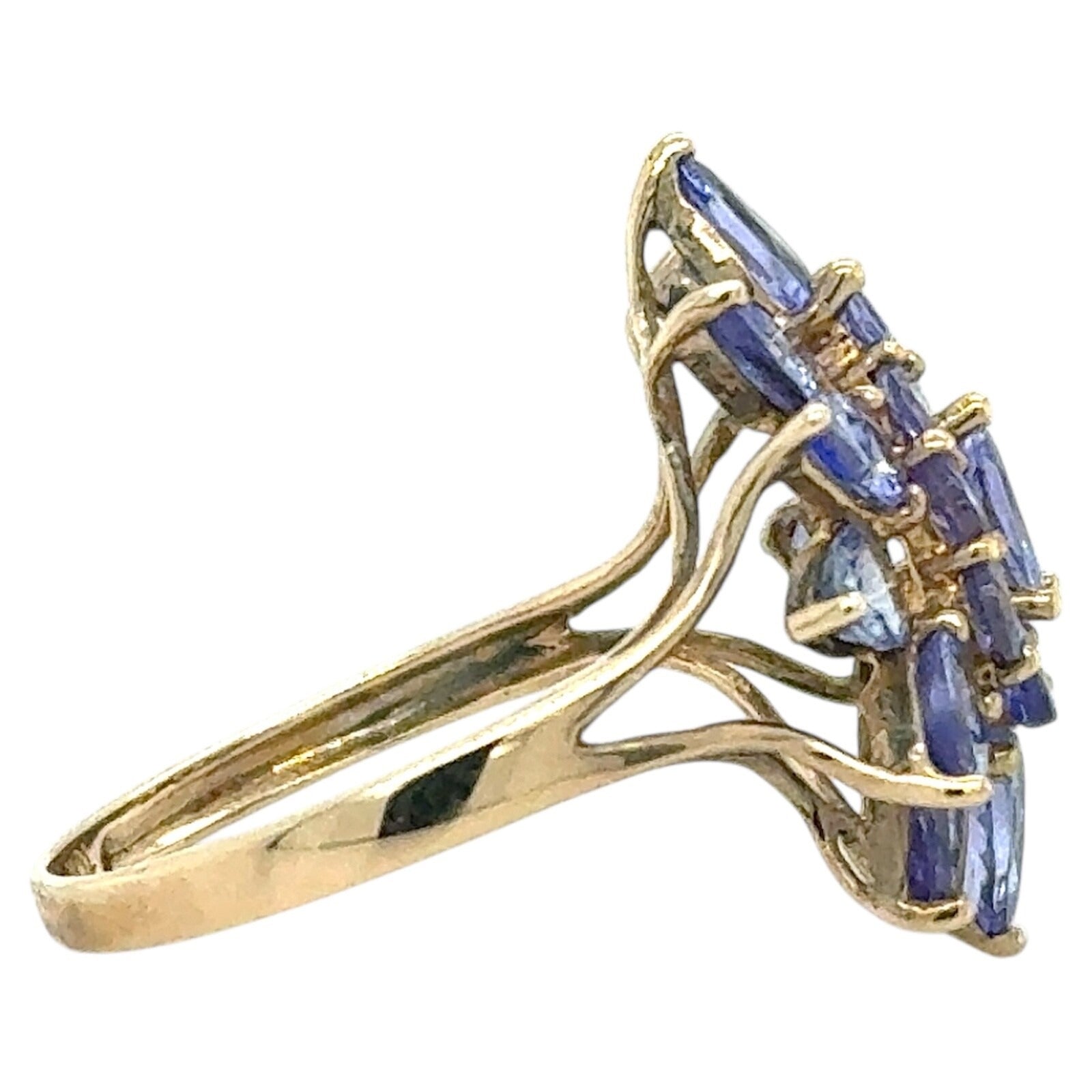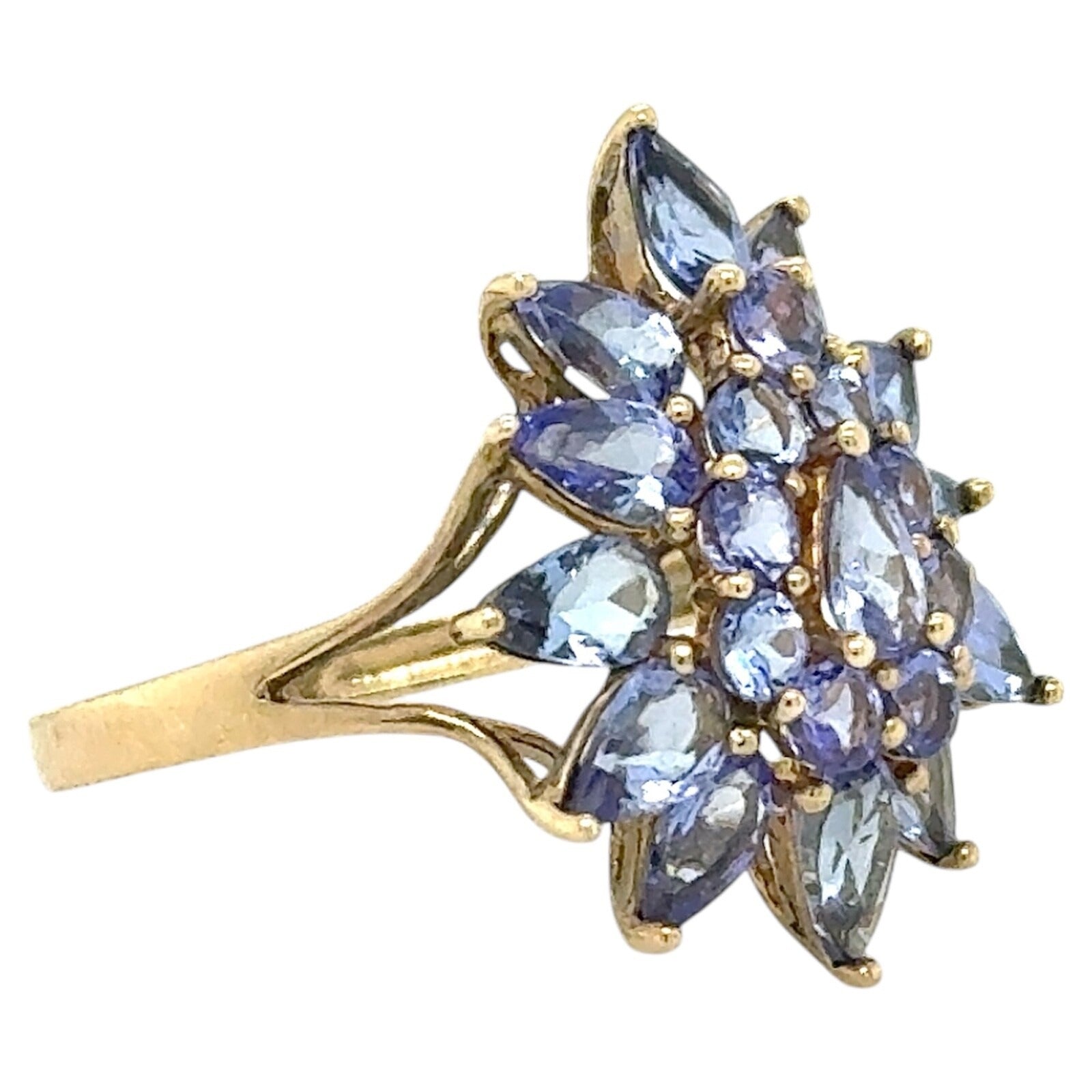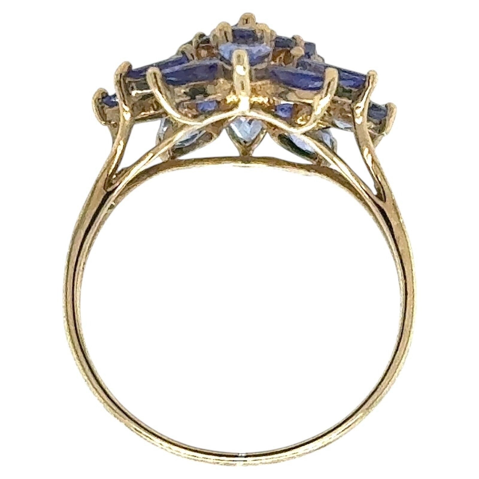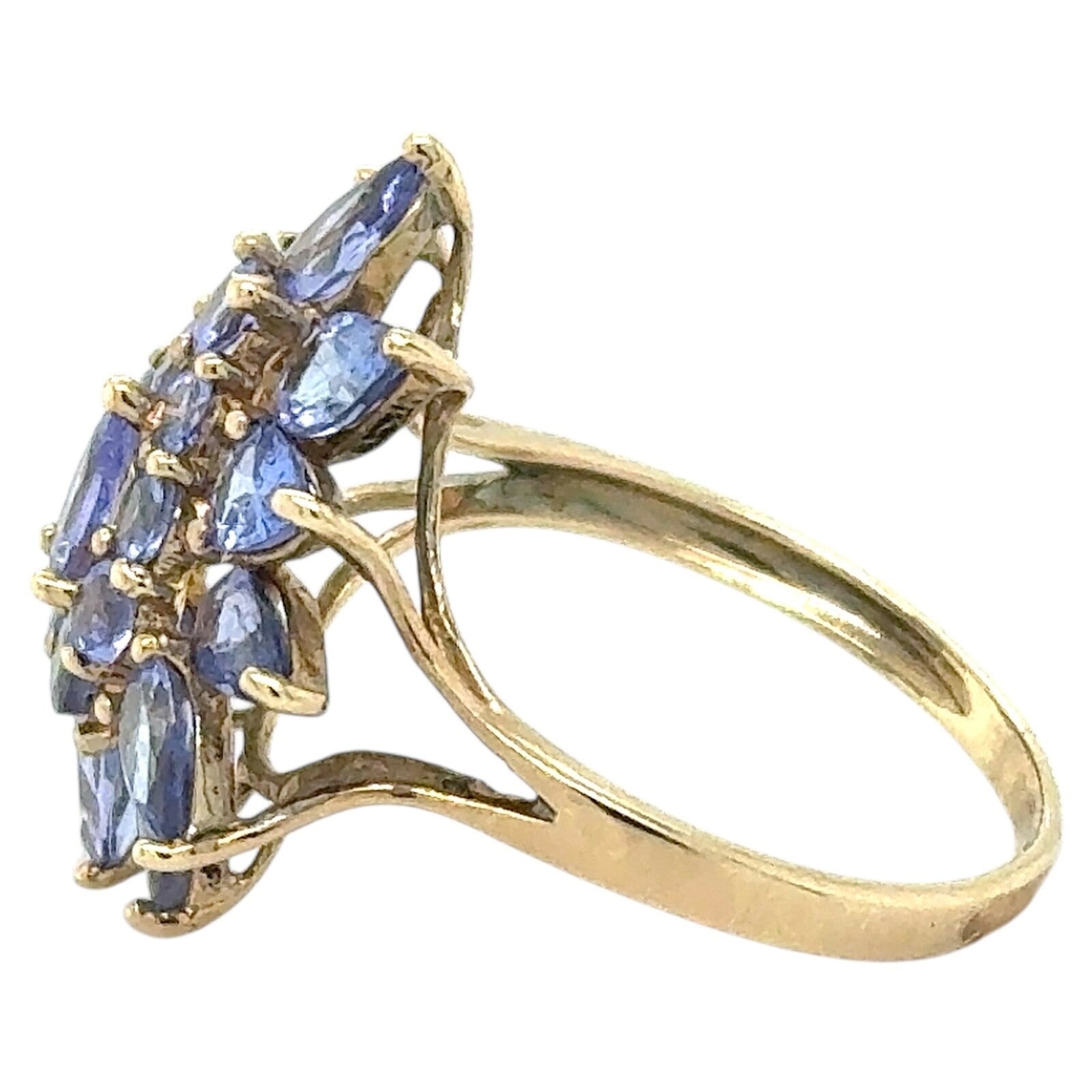 2.75ctw Tanzanite Cluster Cocktail 10k Yellow Gold Ring 2.8g Size 7.25