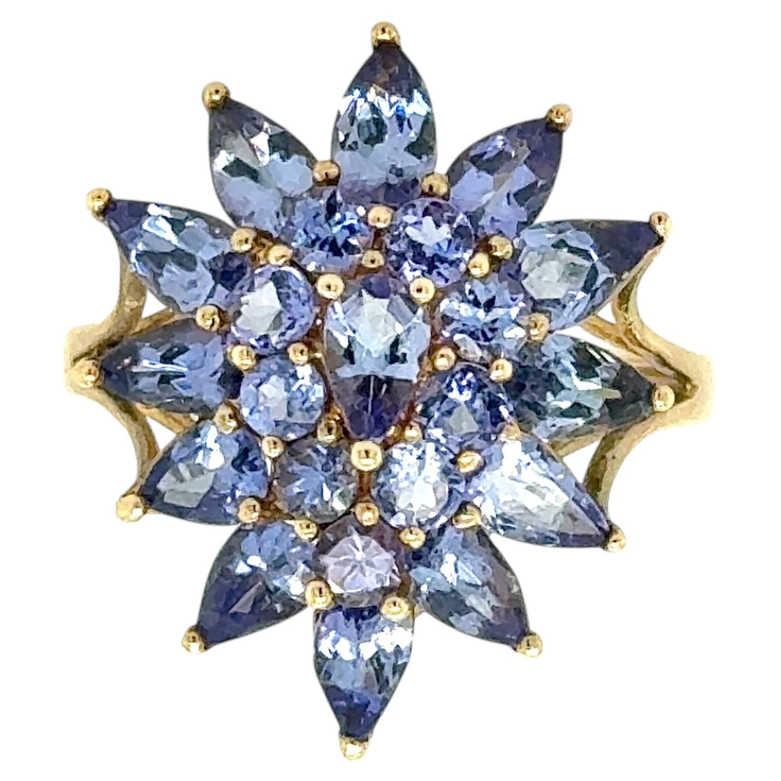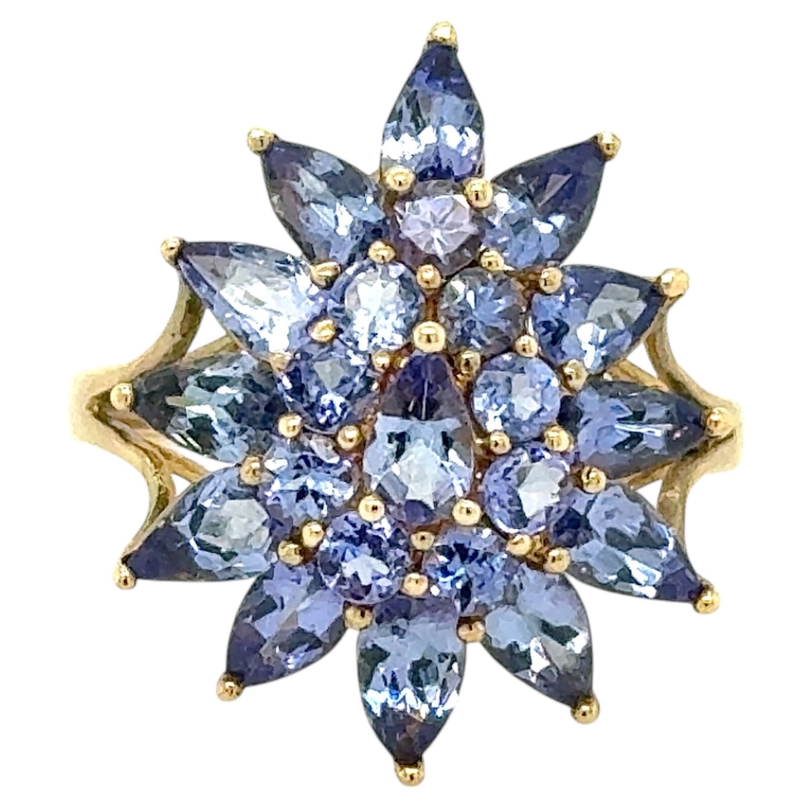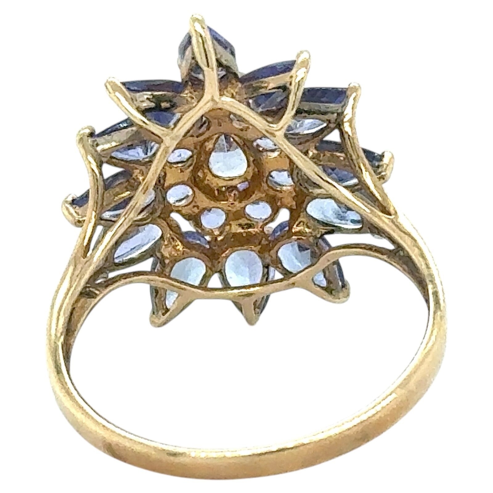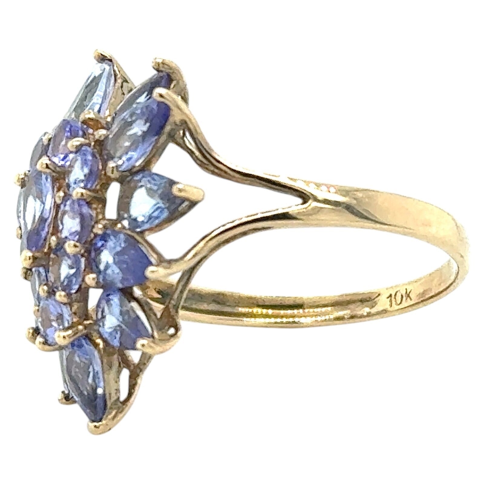2.75ctw Tanzanite Cluster Cocktail 10k Yellow Gold Ring 2.8g Size 7.25