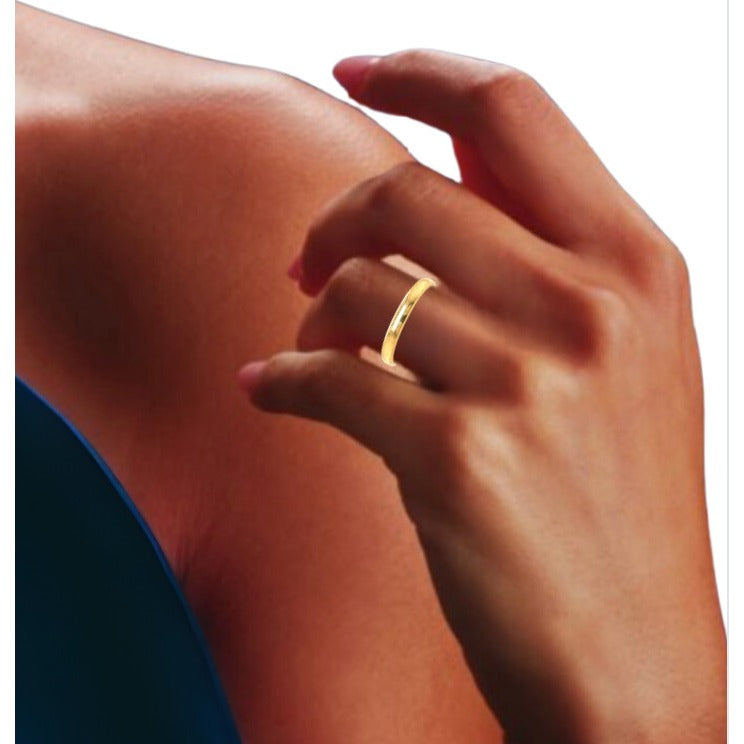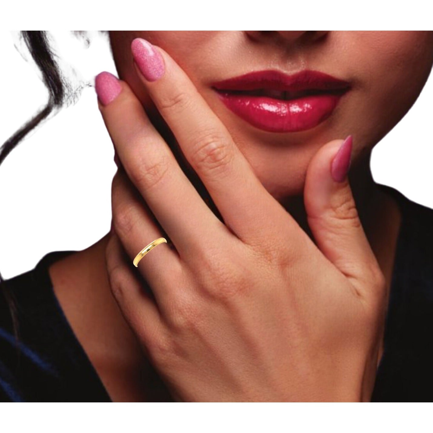 This beautiful 2.7mm wedding band ring is made of real solid 14k yellow gold, weighing 3.0g and sized at 7.25. The ring shape is round and the band width is 2.7mm. This fine jewelry piece is a perfect fit for any occasion. The seller offers a warranty and the ring is sizable if needed. The style is a classic band, making it timeless and elegant.