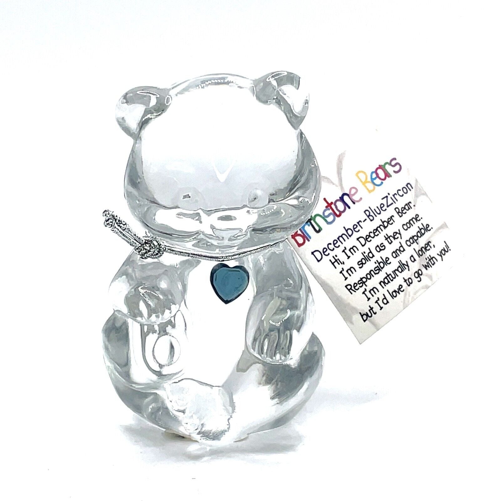 3 1/4" Fenton Birthstone Glass Bears December- Blue Zircon - 5151 X2