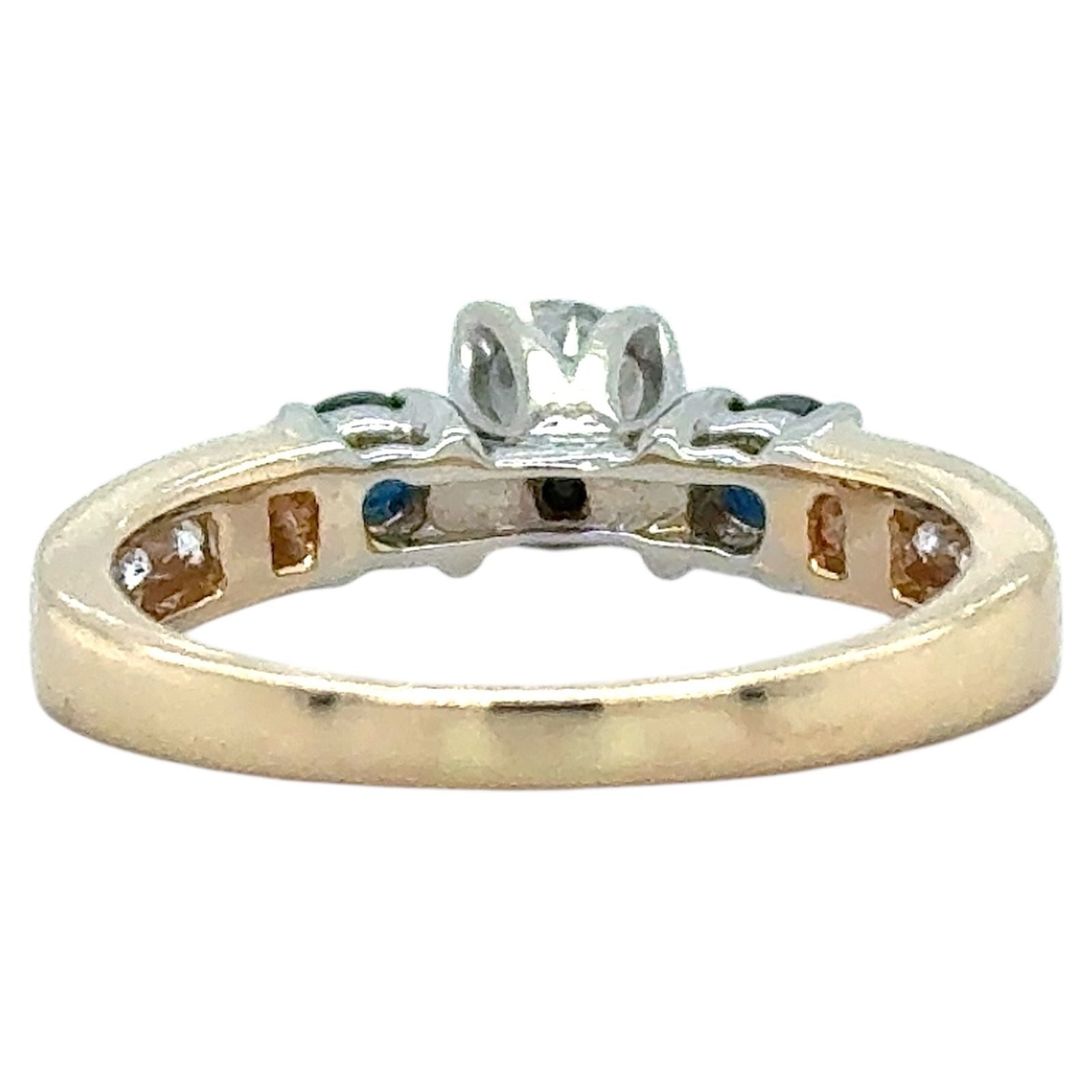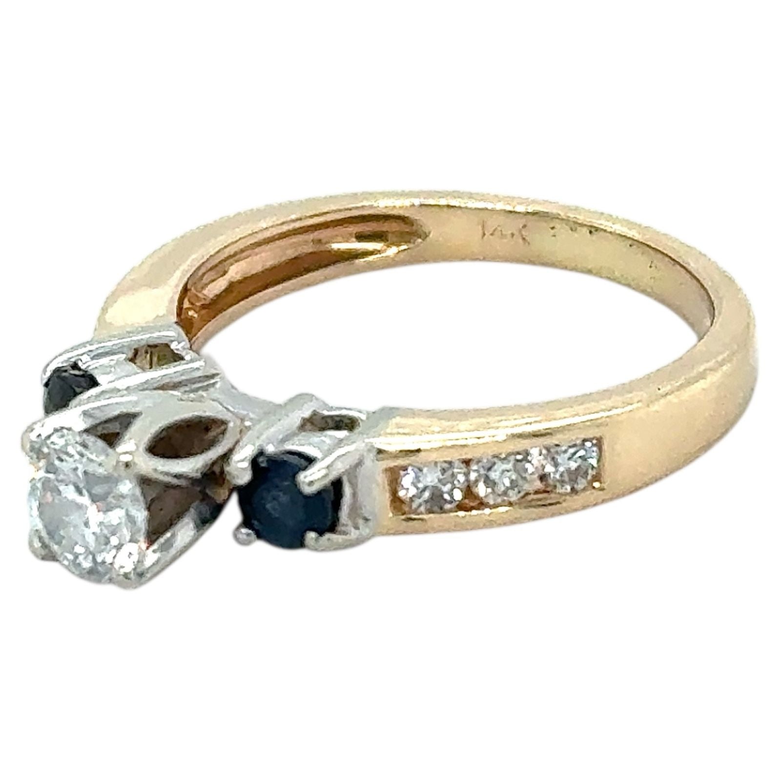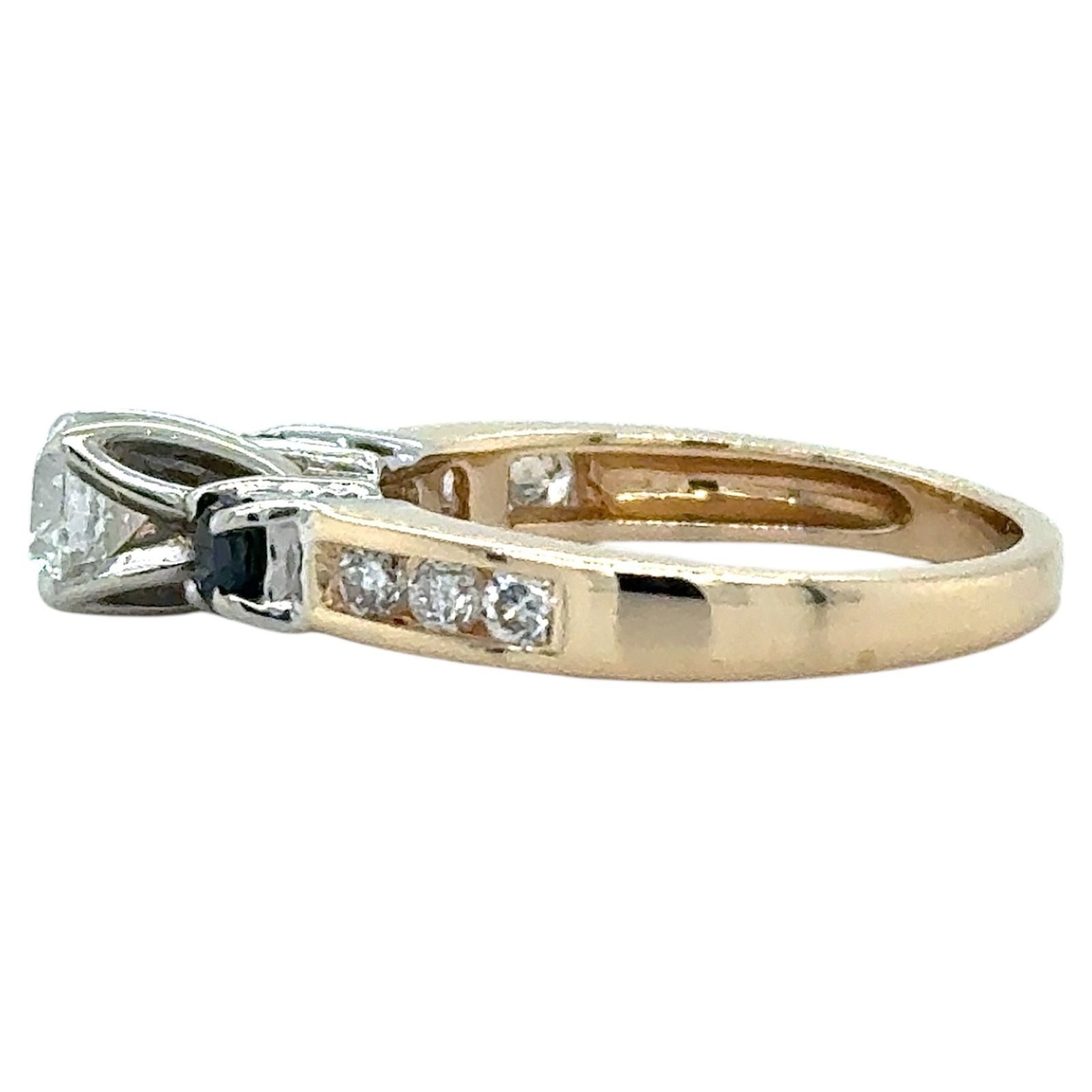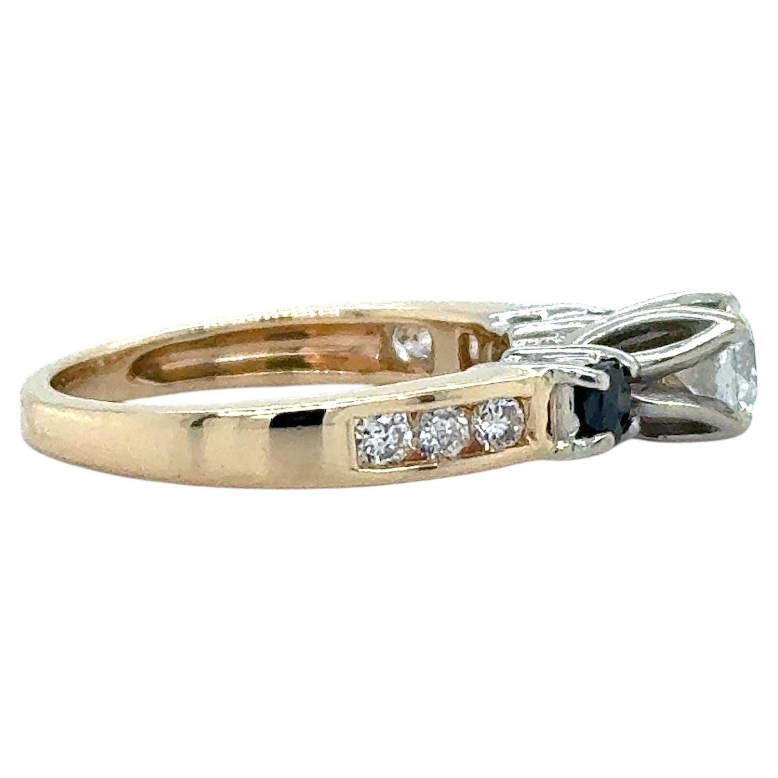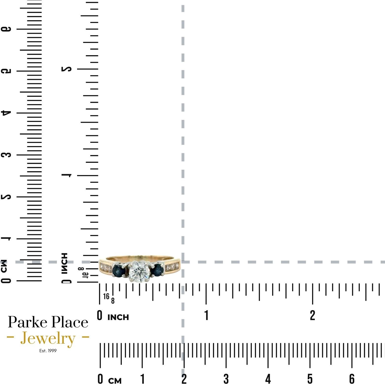 A timeless design with dazzling diamonds and rich blue sapphires set in 14K yellow gold. This elegant 3/4ctw ring is a sophisticated statement piece.