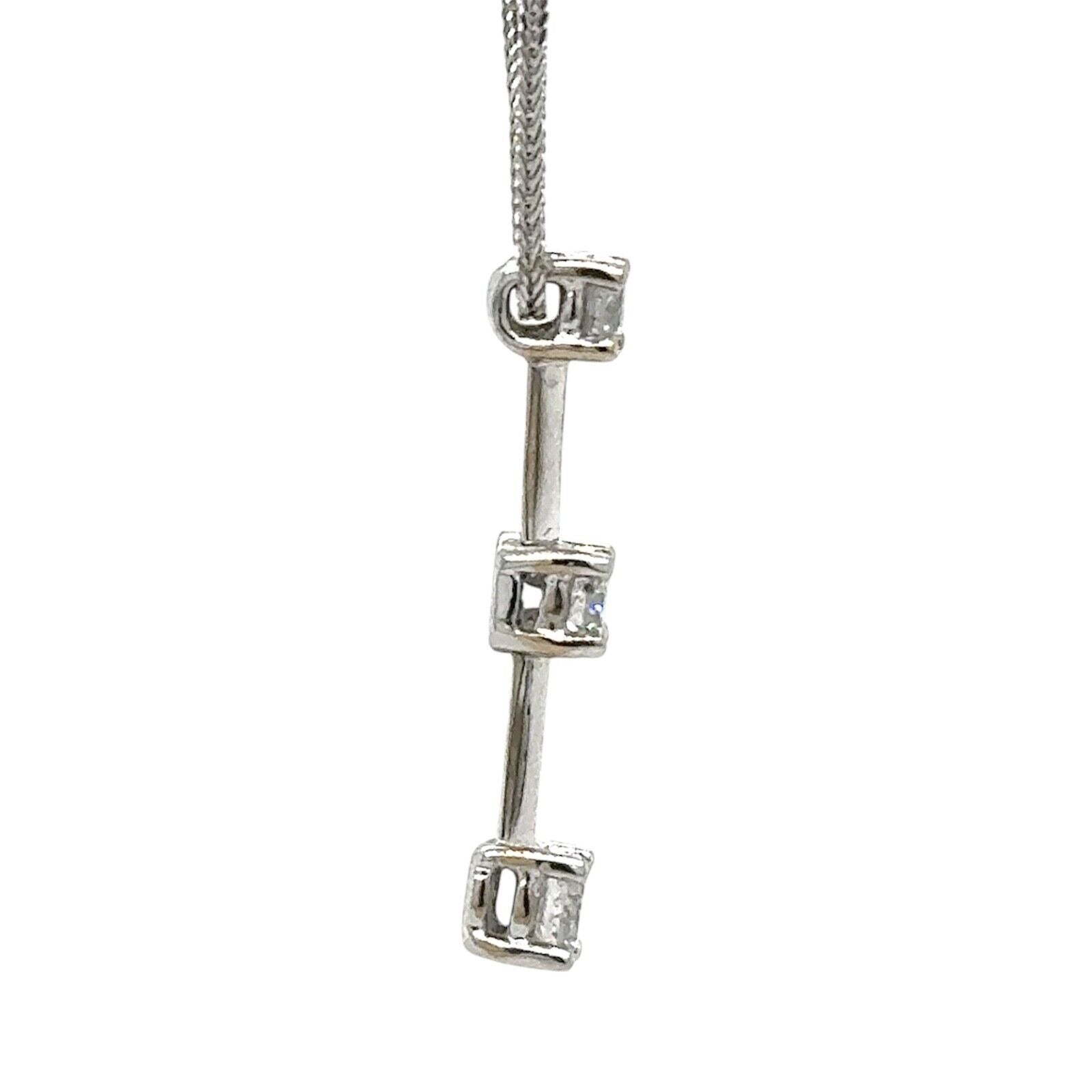 This 3/8ctw Diamond 14k White Gold Pendant with 16" inch Necklace is a stunning piece of fine jewelry perfect for special occasions. The pendant features a journey shape with three round white/colorless diamonds set in prong style on 14k white gold. The necklace is 16 inches long and is 14k white gold, making it a beautiful and elegant addition to any jewelry collection.