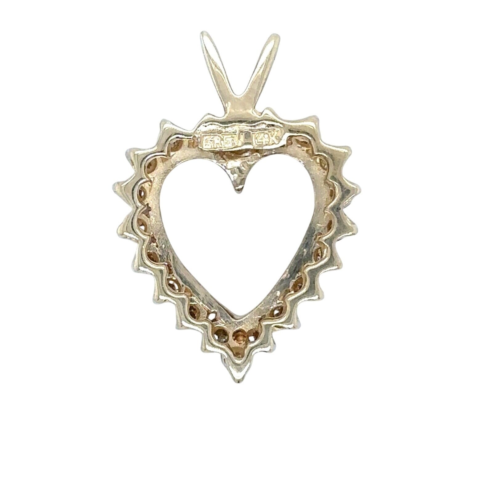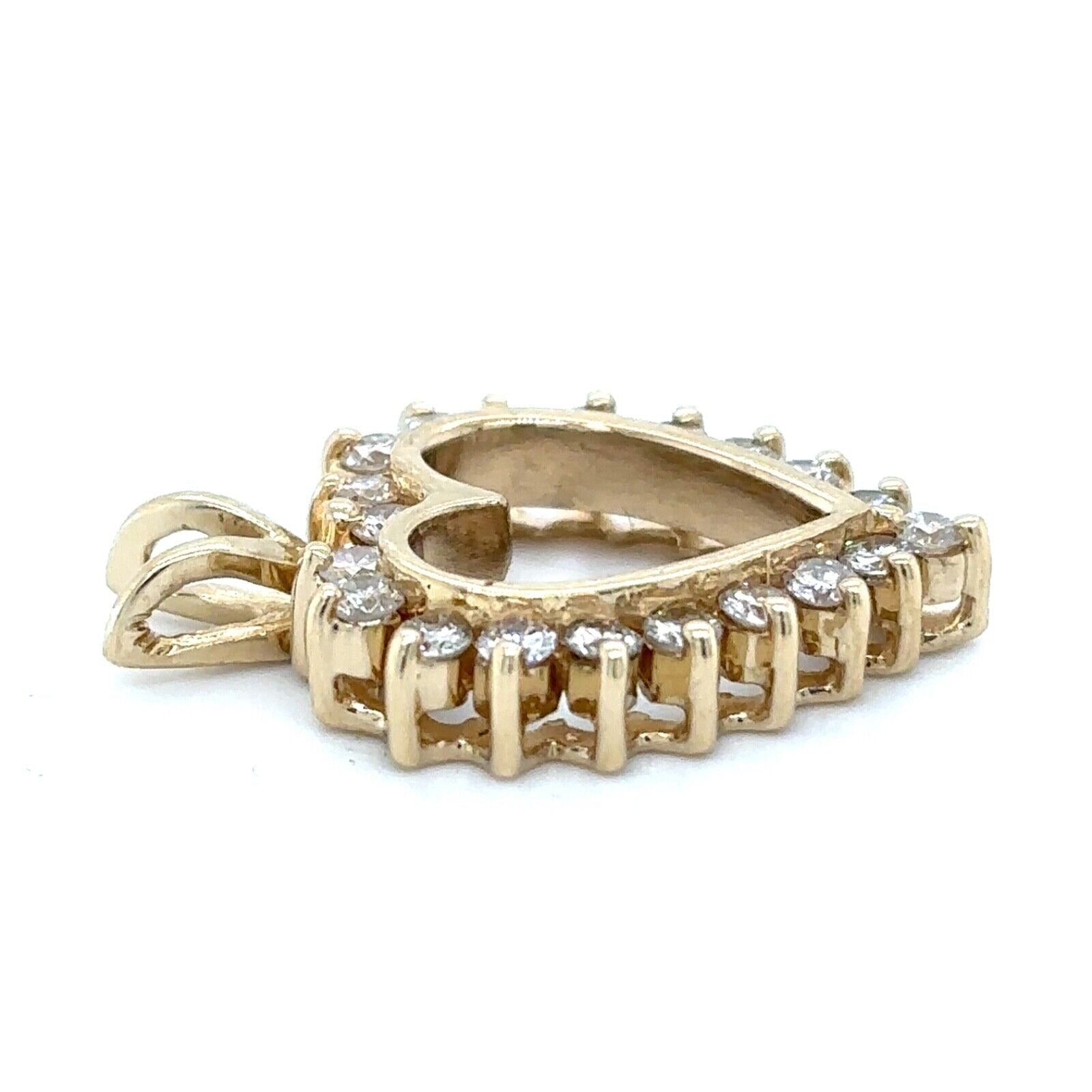 This beautiful pendant features a heart-shaped 14k yellow gold design adorned with 0.4 total carat white/colorless diamonds. The diamonds have a clarity grade of Slightly Included (SI1-3) and a color grade of H-J. The pendant weighs 2.5g and is perfect for any jewelry collection. Its style is a classic pendant design, making it suitable for any occasion. The base metal is yellow gold, and the metal purity is 14k. This pendant is a must-have for anyone who loves fine jewelry and wants to add a touch of elegance to their collection.