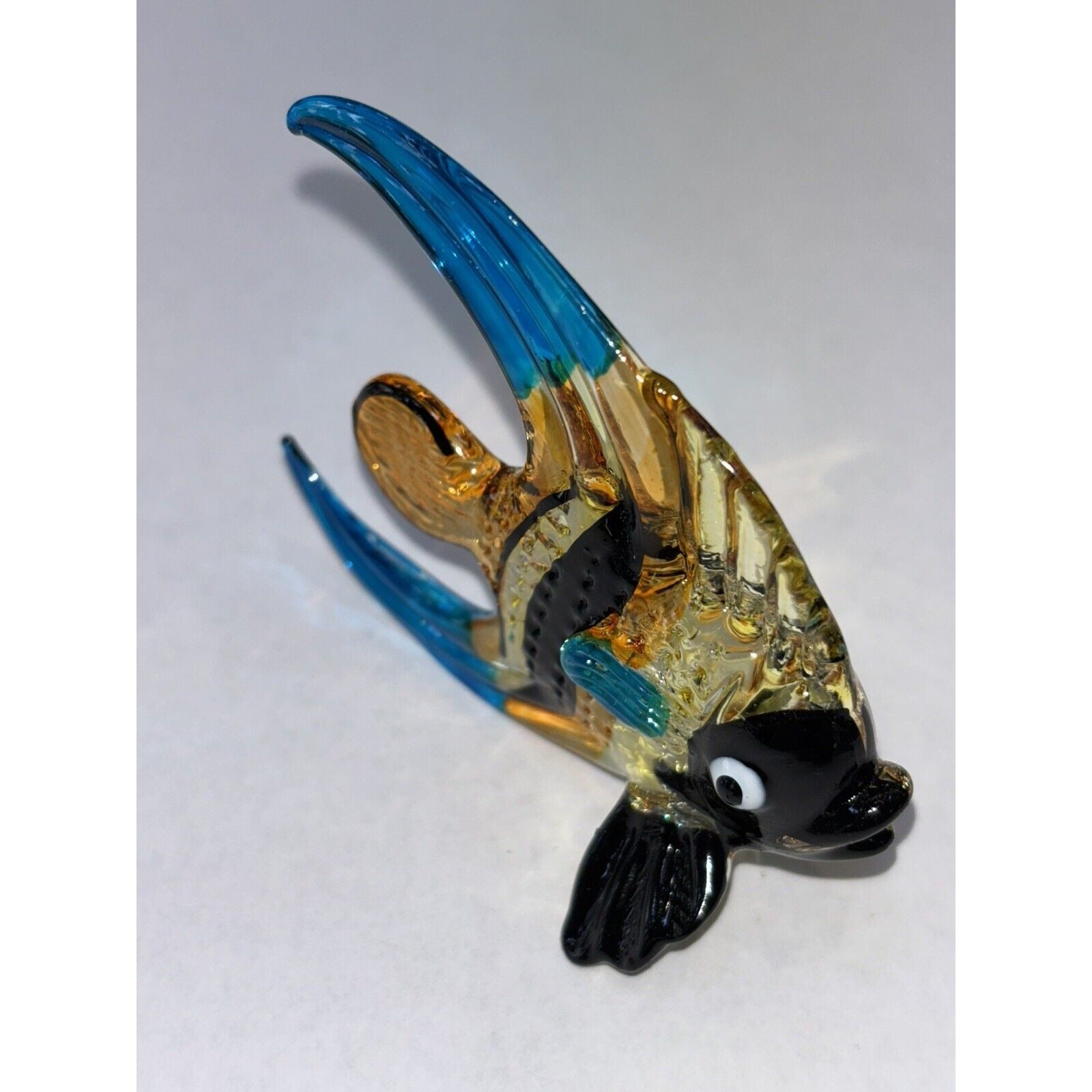 3" Long Yellow Black Blue Butterflyfish Figurine Miniature Hand Blown Glass Animal Colorful Marine Life Butterfly Fish