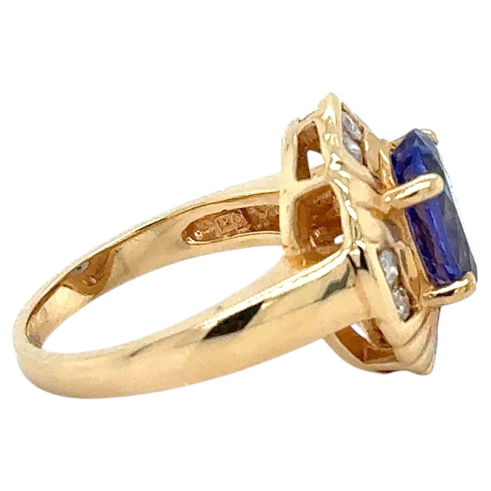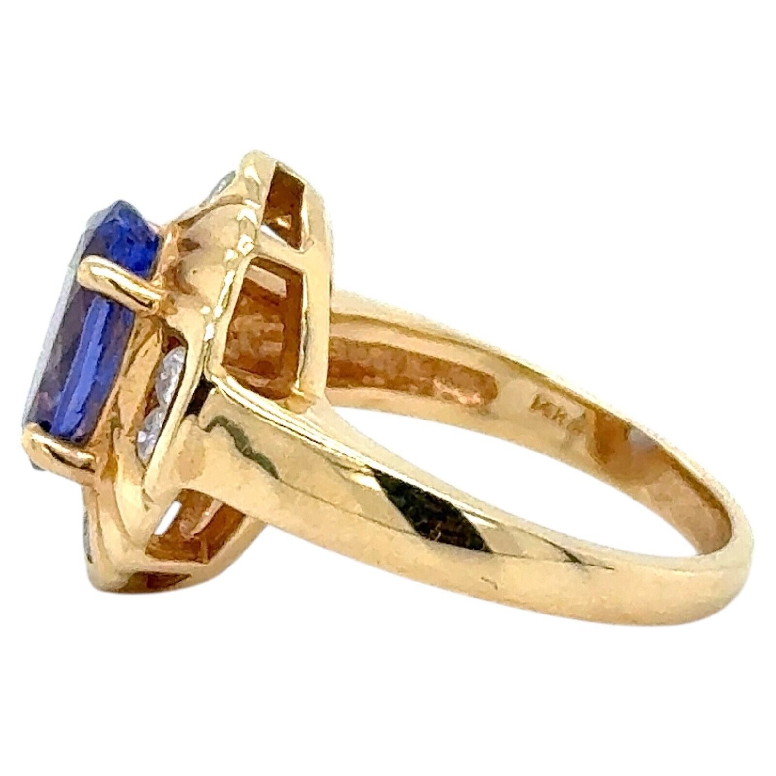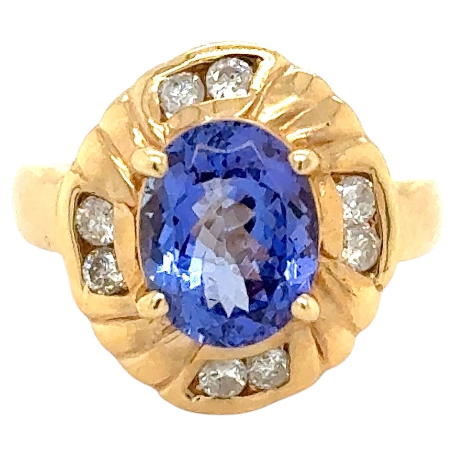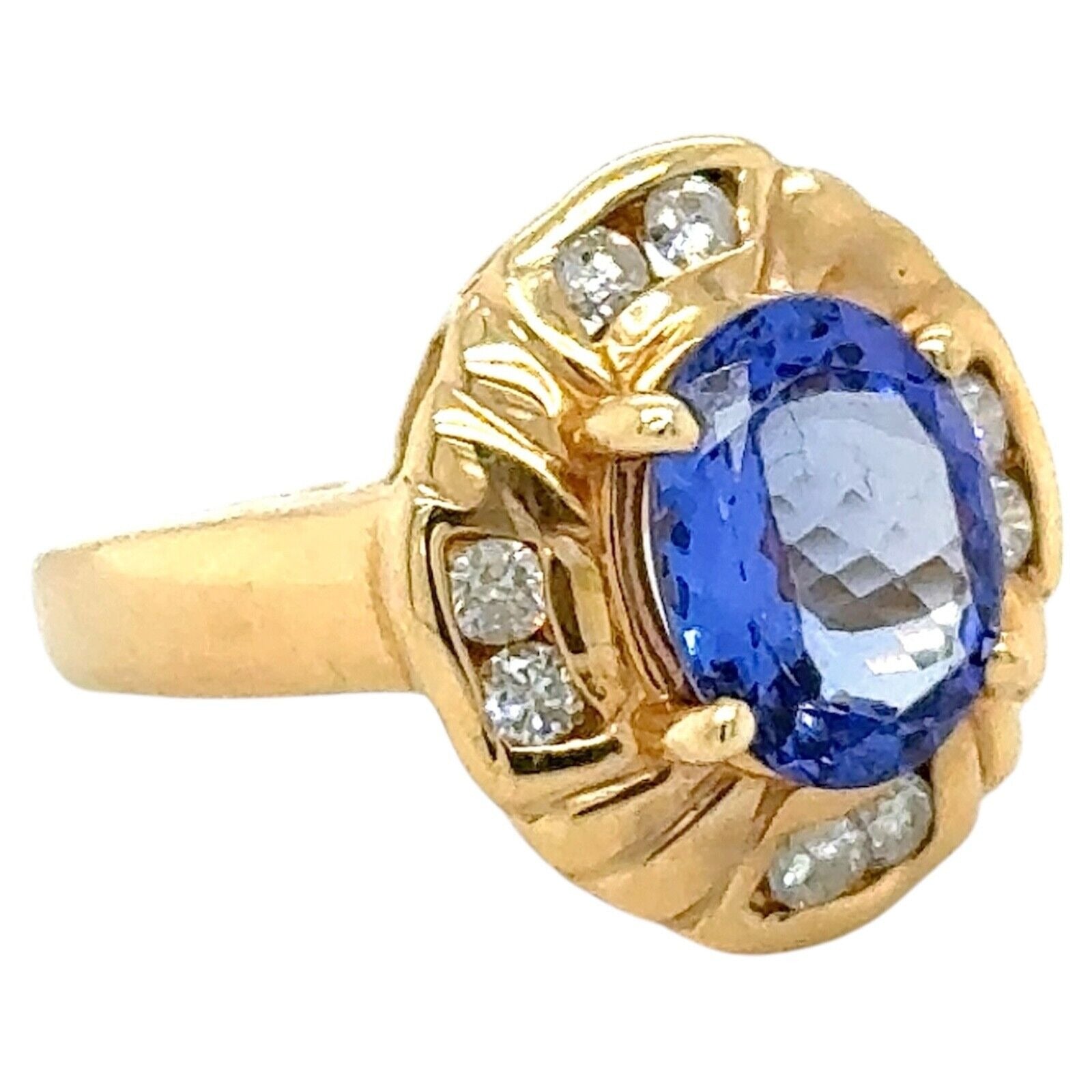 3ctw Tanzanite Solitaire with Diamond Accents 14k Yellow Gold Ring 6.8g Size 6.5