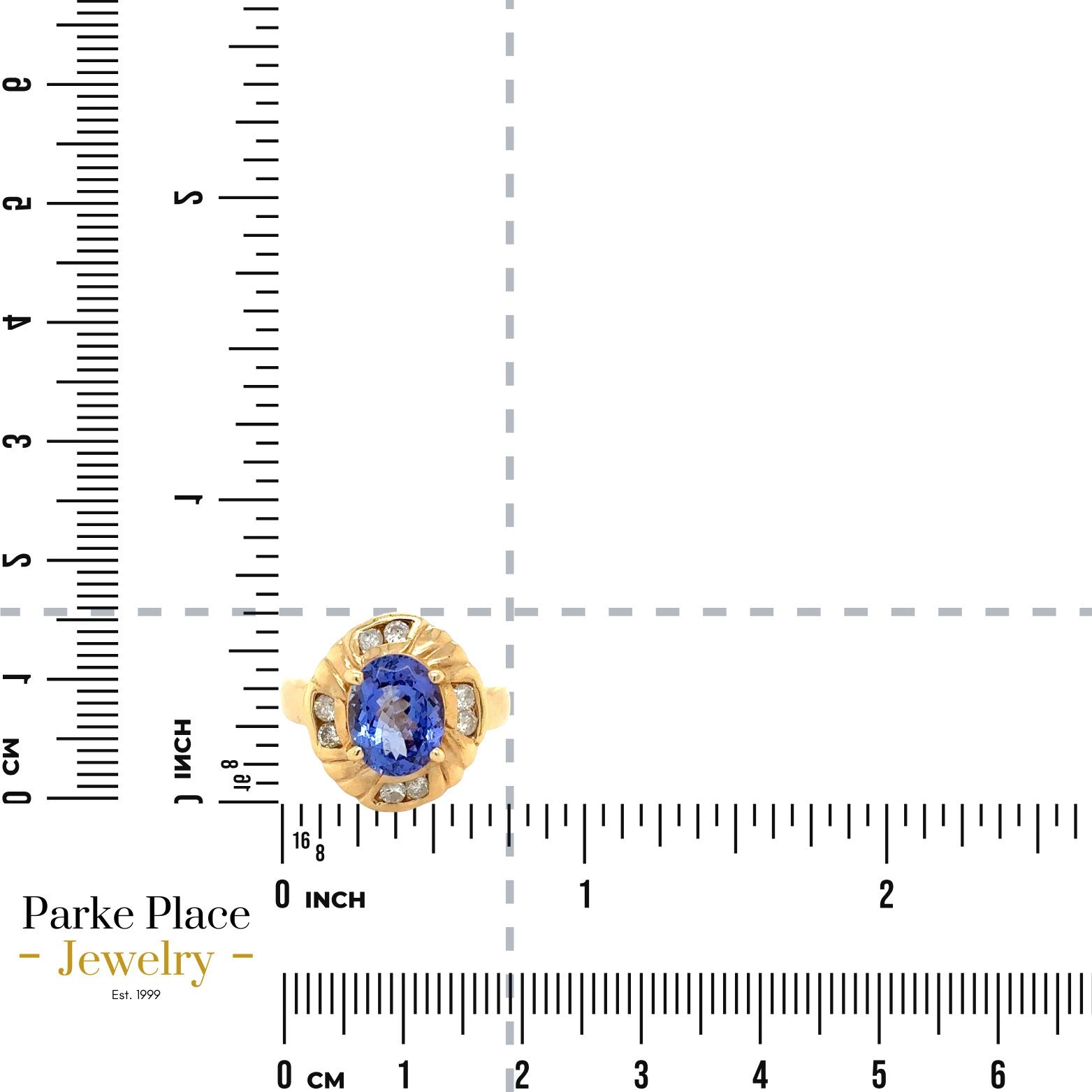 This 3ctw Tanzanite Solitaire with Diamond Accents 14k Yellow Gold Ring is a stunning piece of fine jewelry. The oval-shaped Tanzanite as the main stone with 8 diamond accents adds a touch of elegance and luxury. The 14k yellow gold setting and accents give it a rich and vibrant color, making it a beautiful gift for any occasion.