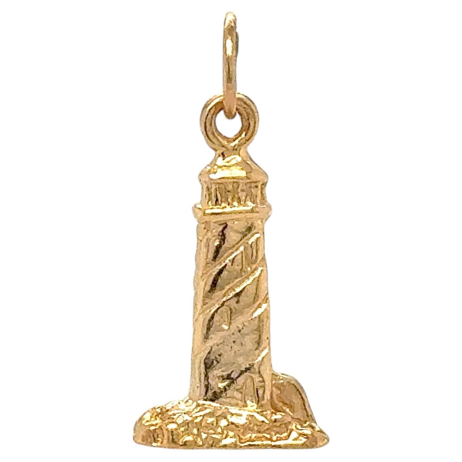 3D Lighthouse 14k Yellow Gold Pendant 1.6g
