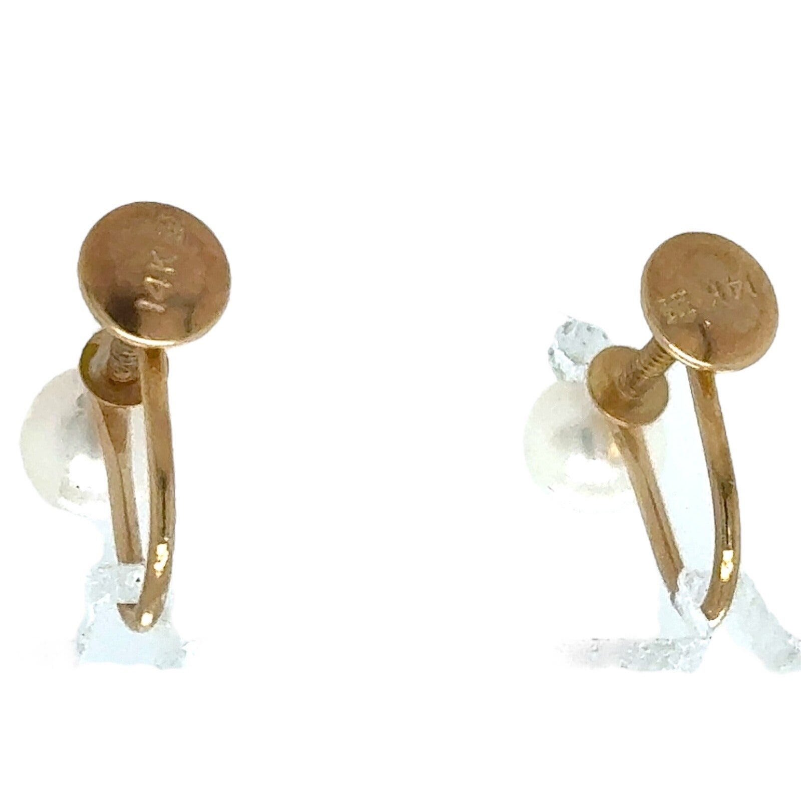 5mm Pearl Stud Screw Back 14k Yellow Gold Earrings 1.3g
